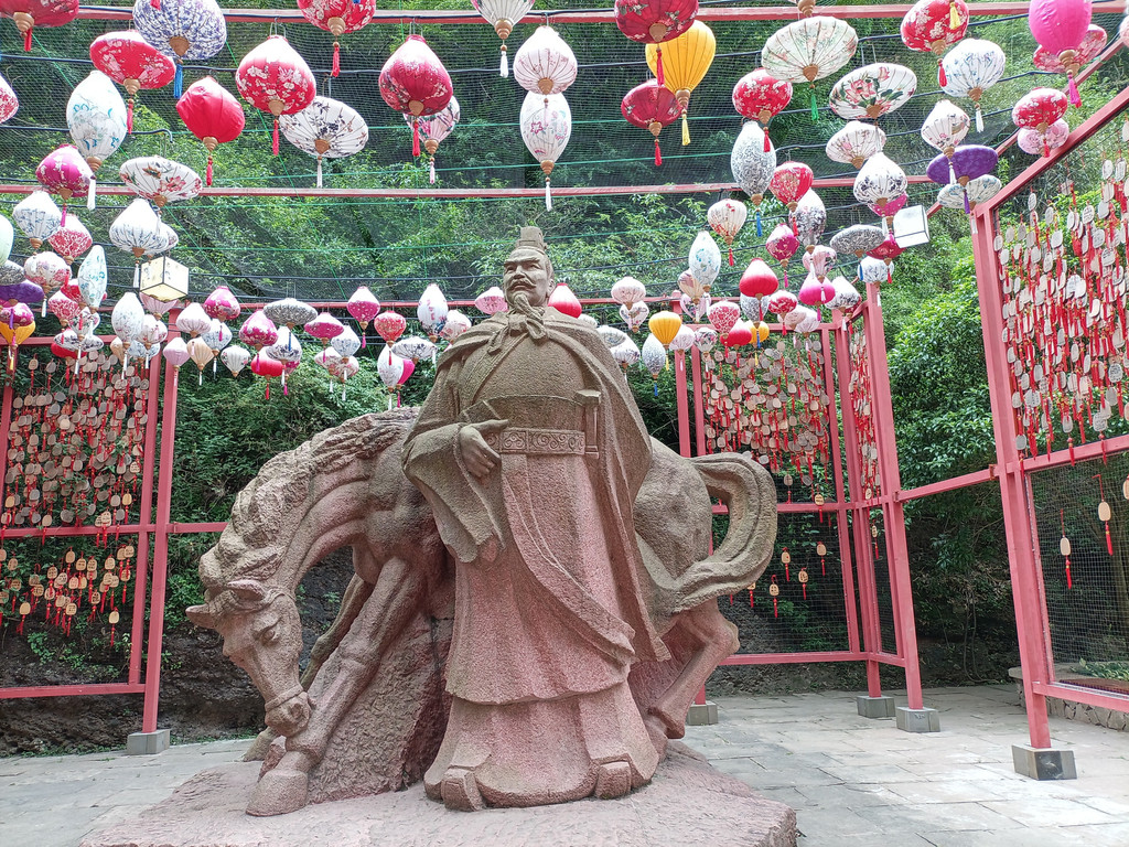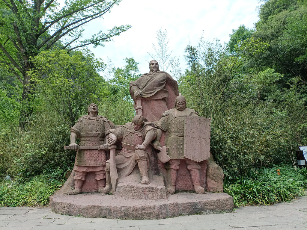 我们住处不远就是客运站,就有到剑门关南门的班车,30公里的路程1个小时就到了,很是方便,有些攻略上说的已是过时了。南门进去不用坐电瓶车,走走就到了,沿途有些三国故事的雕塑,不久就看到关楼,两边的山势陡峭形似座石门,在古代算是进川的军事要塞,如今成了旅游景点。