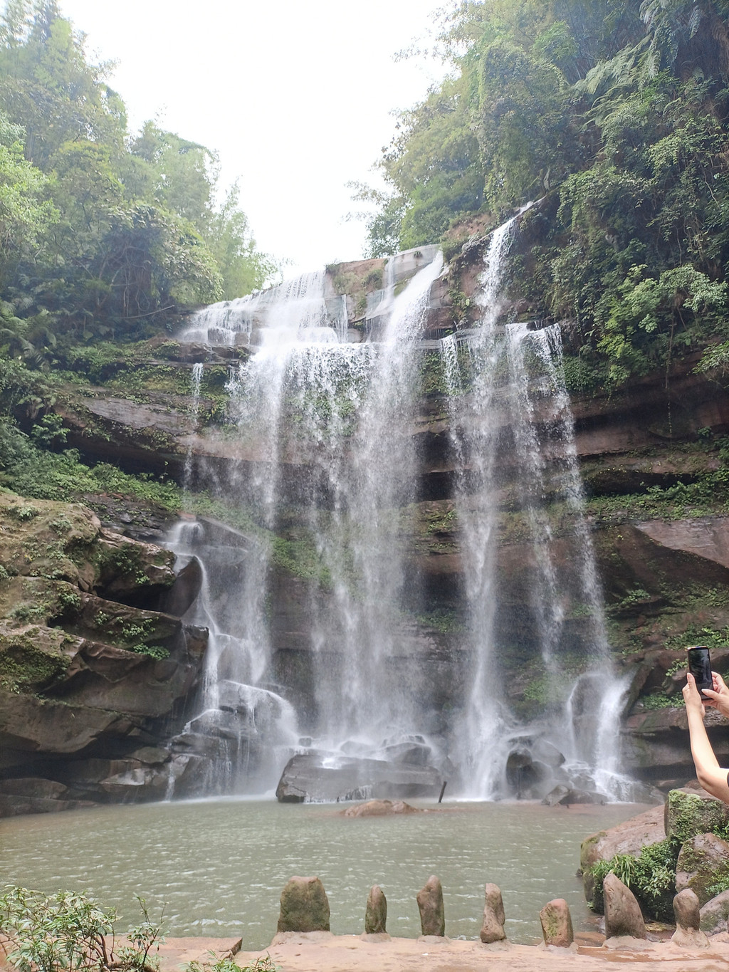 去年到了遵义就南下去了贵阳,没有去赤水,这次是必去的了。到了赤水市区,街道整洁,楼宇林立,比想象中要好。下午就抓紧时间去了大瀑布景区,我们是散客,也不包车,就到市区的旅游汽车站坐班车到了景区。大瀑布景区有电瓶车,到了景点不远处下车,不用走多远就看到和听到了水声。