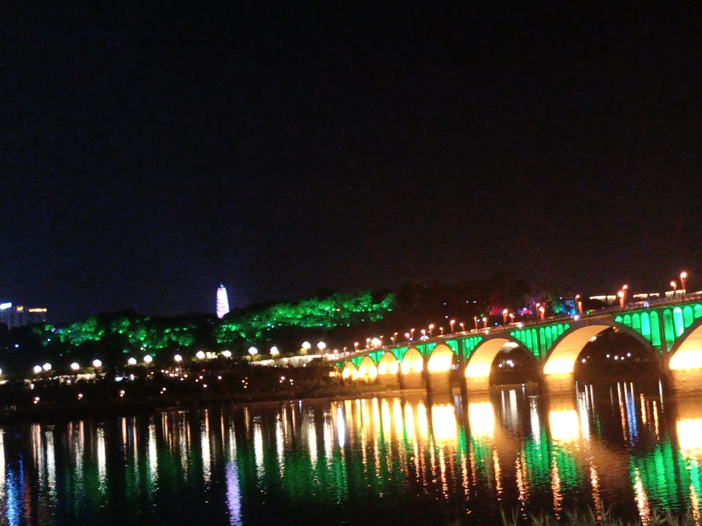 公认的4大古城:丽江,平遥,凤凰,阆中。就剩阆中没去,这次定要去了。我们到达南充已是晚上,江边的夜景还是不错,远处是山上的白塔,乘凉的居民在江边散步。一派祥和的景象。