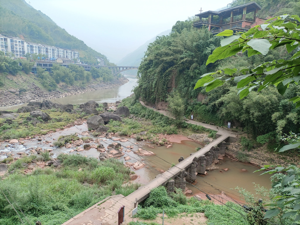 晚上我们在红军大道上的一家饭店吃了顿自助火锅,感到很爽,价格不到上海同档次的一半,值得回味。2天的赤水旅程结束了,第三天一早,我们跨过了赤水河桥到了四川的九枝镇,下图是在桥上照的,左边是赤水市。过桥就是汽车站,去泸州的班车很多,50公里就到了泸州市。