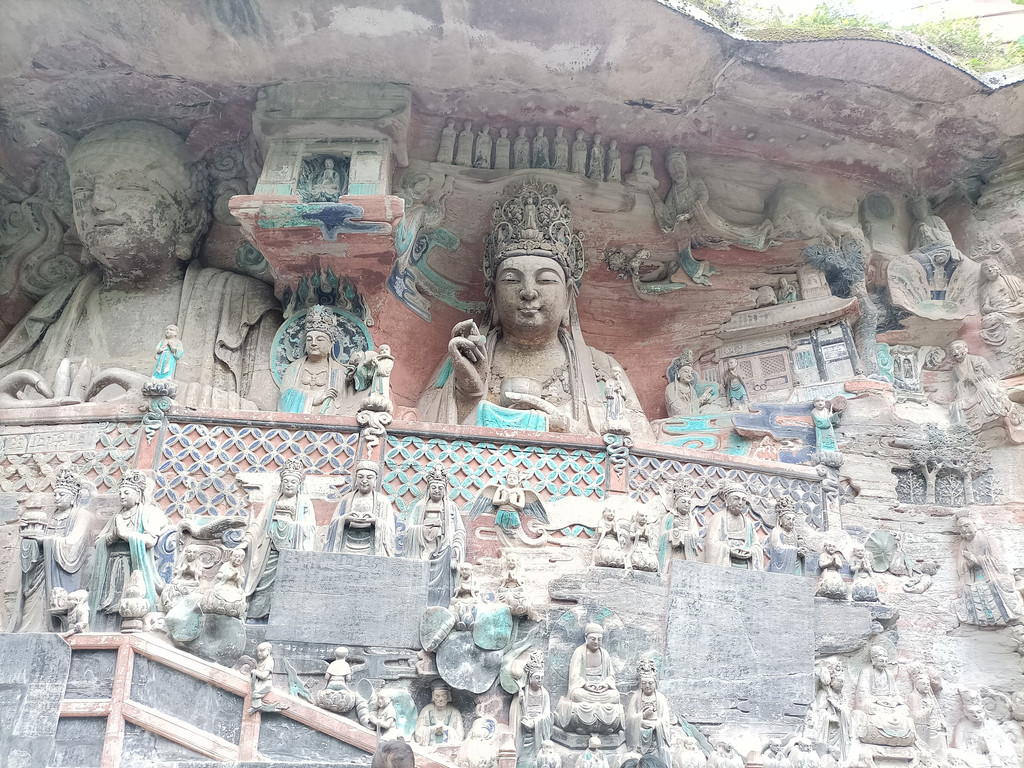 我们参加当地的大足一日游,看到了精致的石刻艺术,上次没看到的千手观音也修复后开放了。