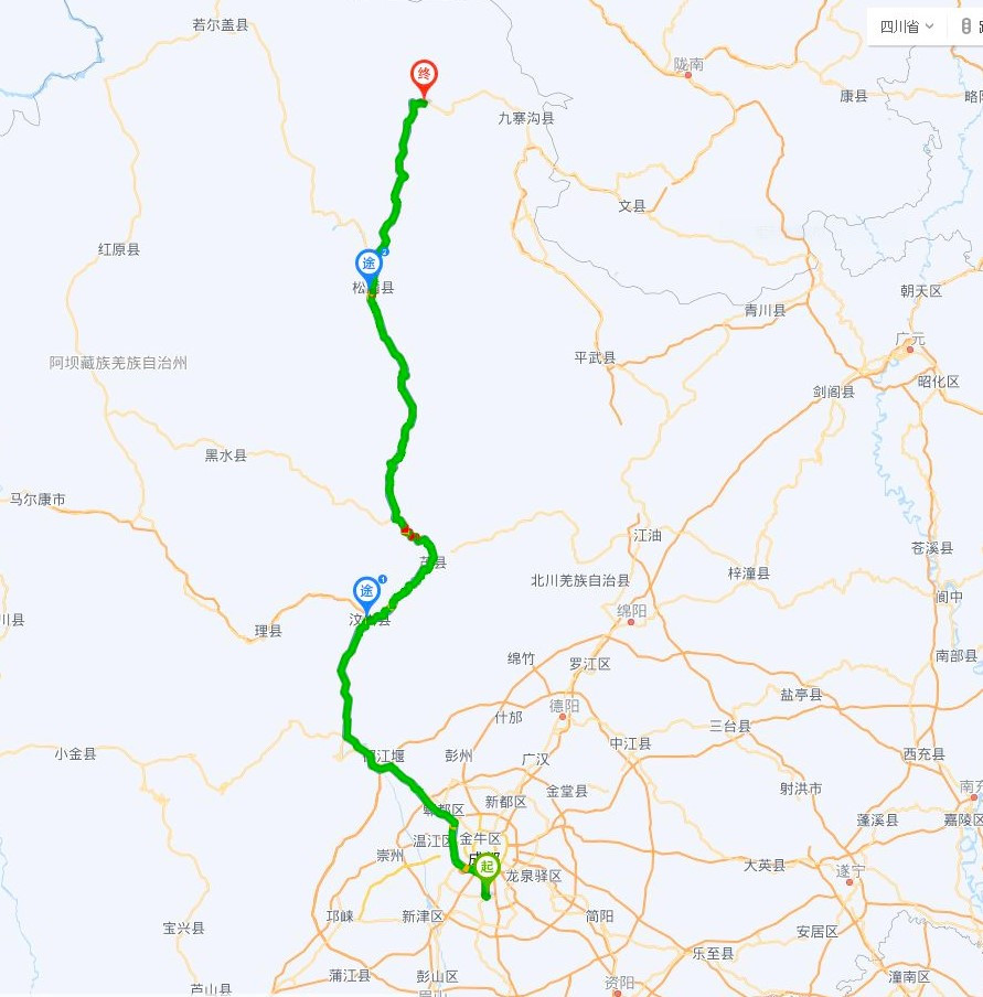 今日行车路线图,大约430多公里,路经都江堰、汶川、茂县、松潘县。