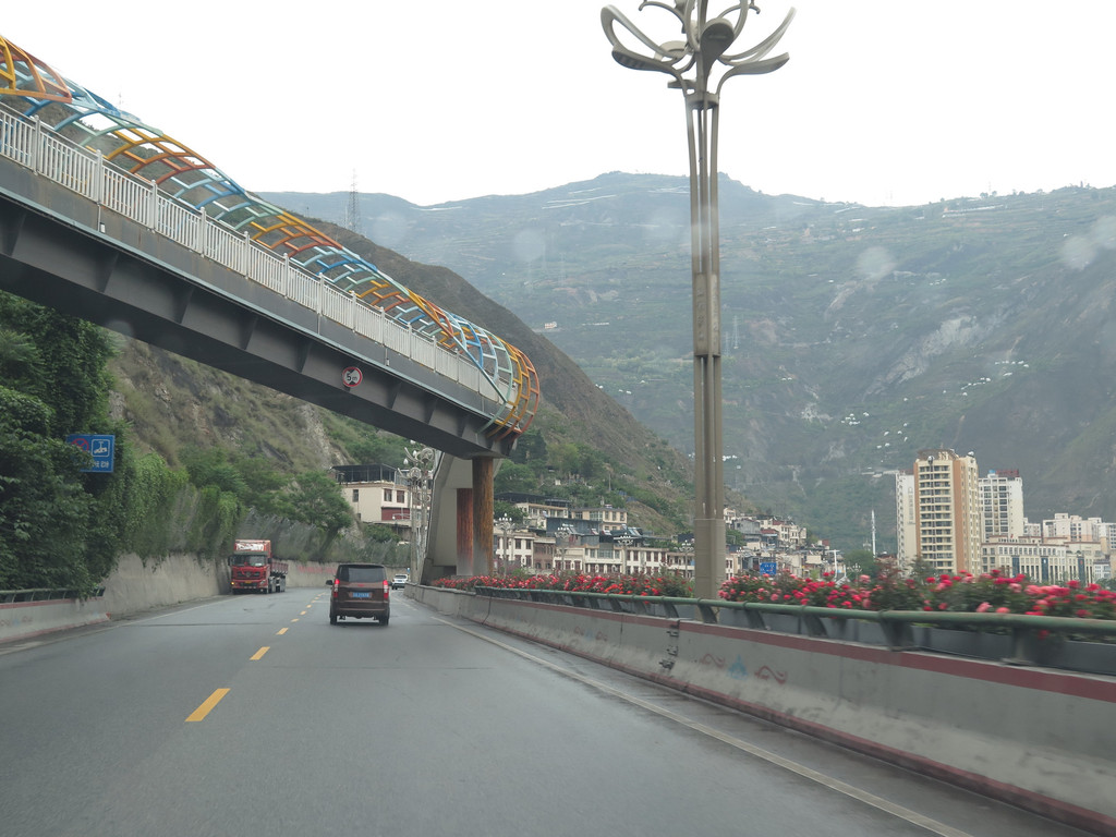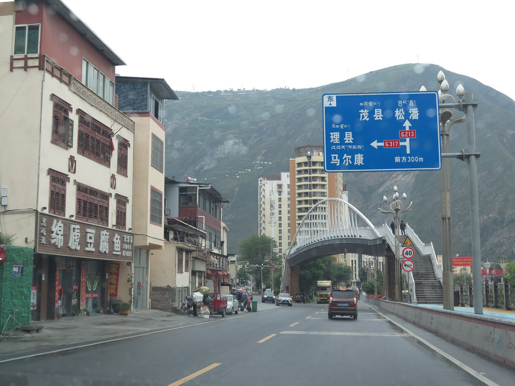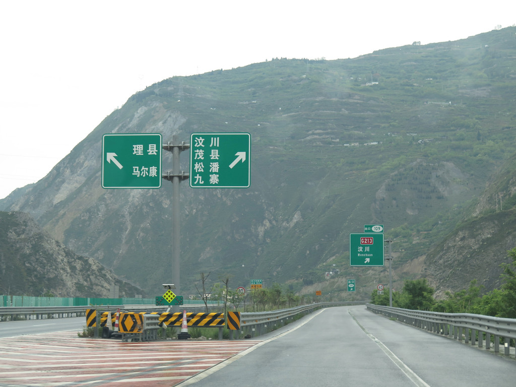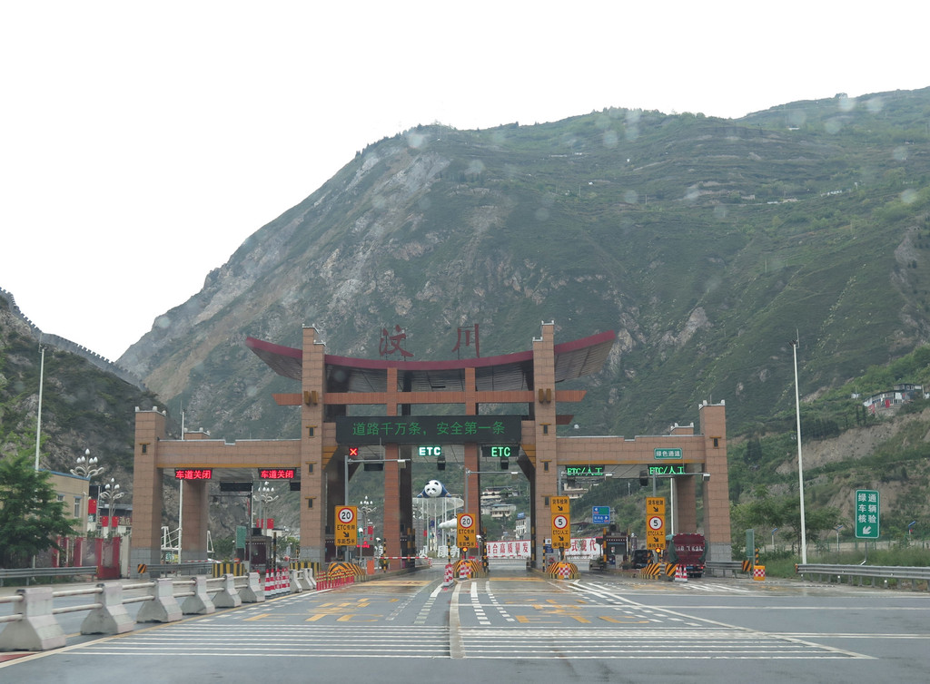 汶川收费站,驶出高速路,上G213国道。