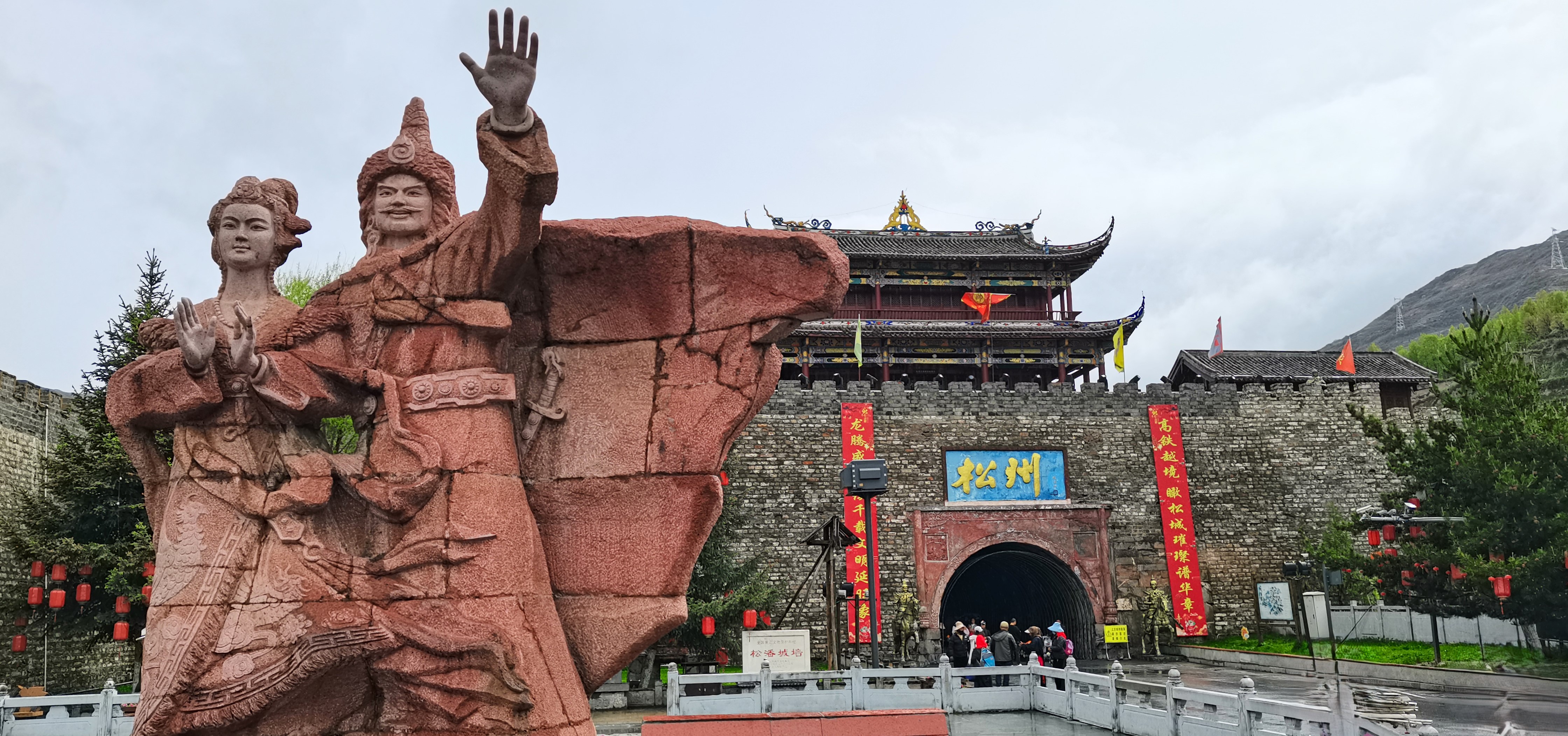 松潘古城,位于阿坝州东部,自古以来即为川、甘、青三省商贸集散地,有“川西北重镇”、“边陲重镇”之称。古城北门,松赞干布与文成公主的塑像,展示着那段民族团结的千古佳话。