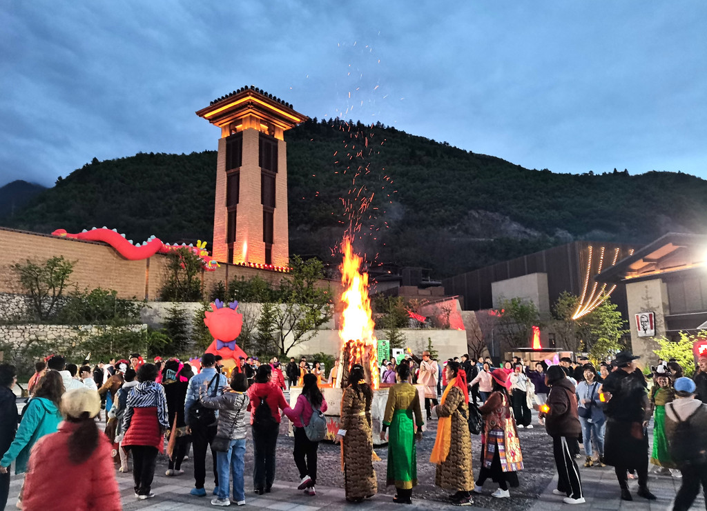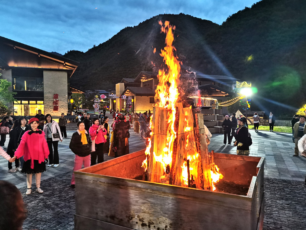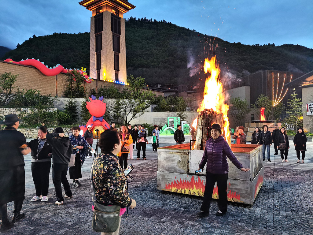篝火燃起,音乐奏响,令观望的游客们心花怒放。