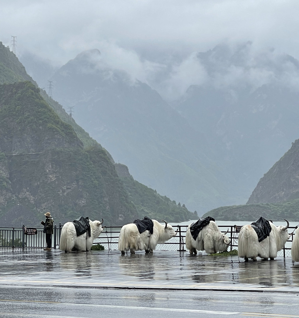 供游客骑乘、拍照的白牦牛。