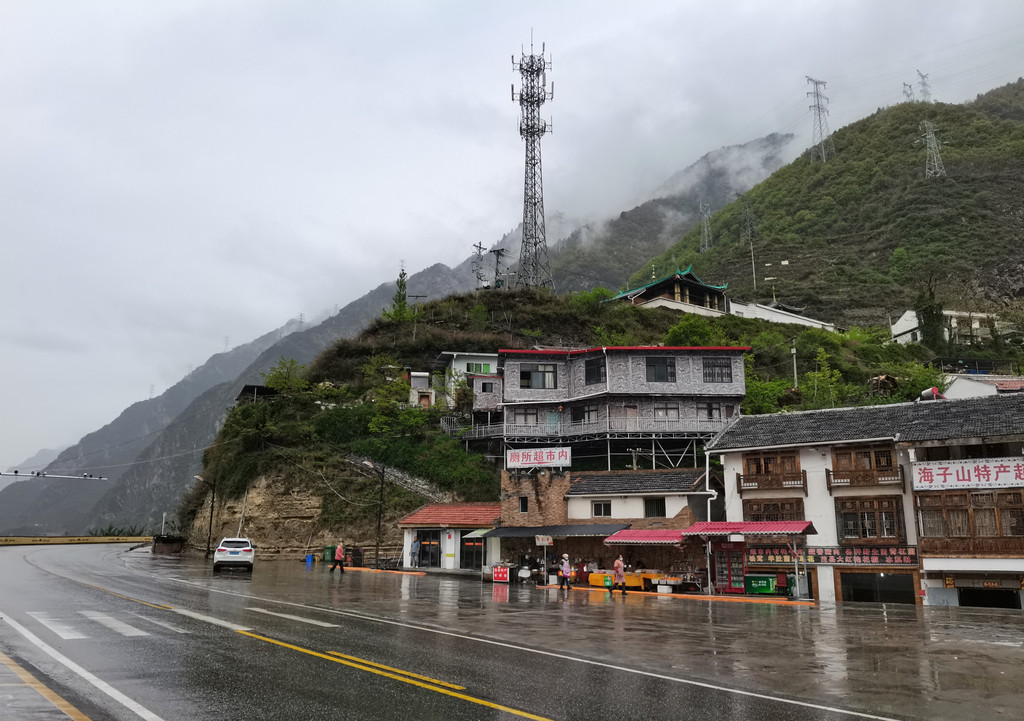 川主寺镇,小镇海拔2980米,坐落在青山怀抱之中,周边郁郁葱葱。