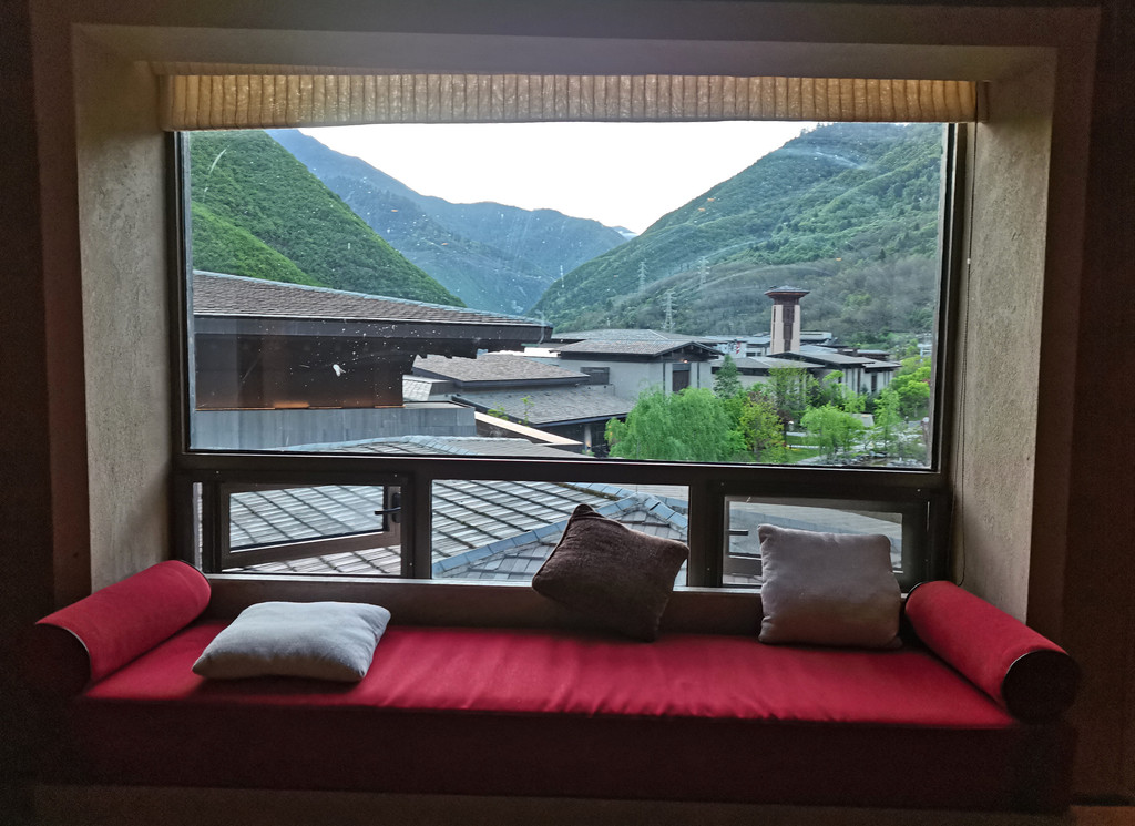 酒店周边环境优美,空气清新,窗外是森林与山地景观。