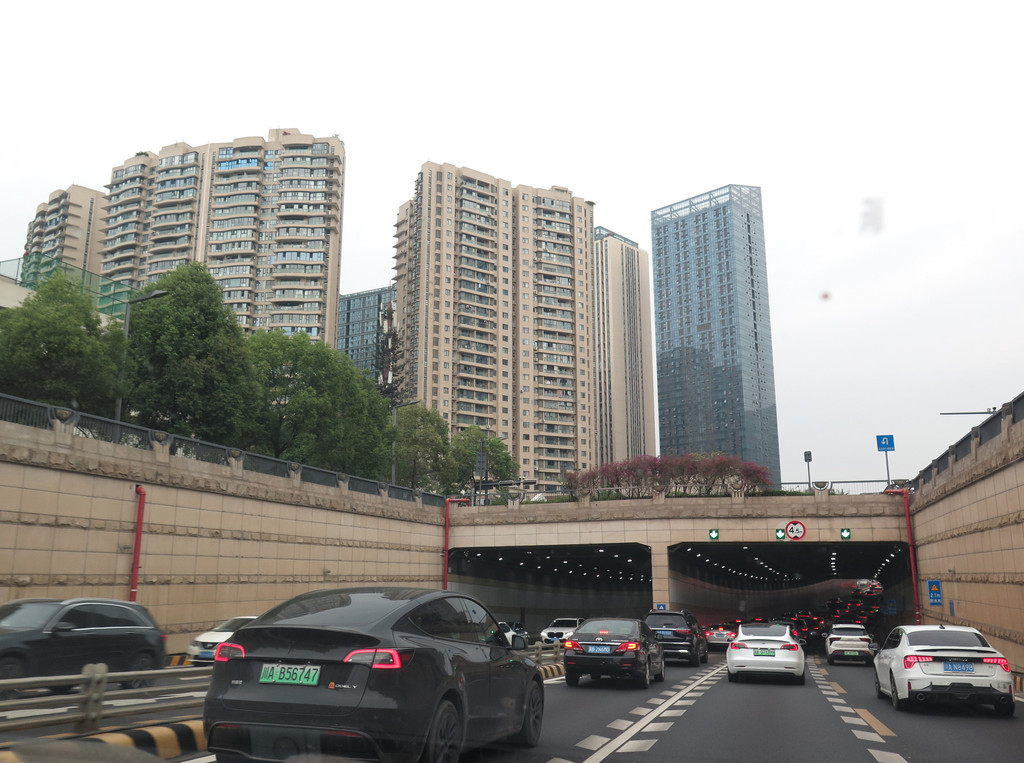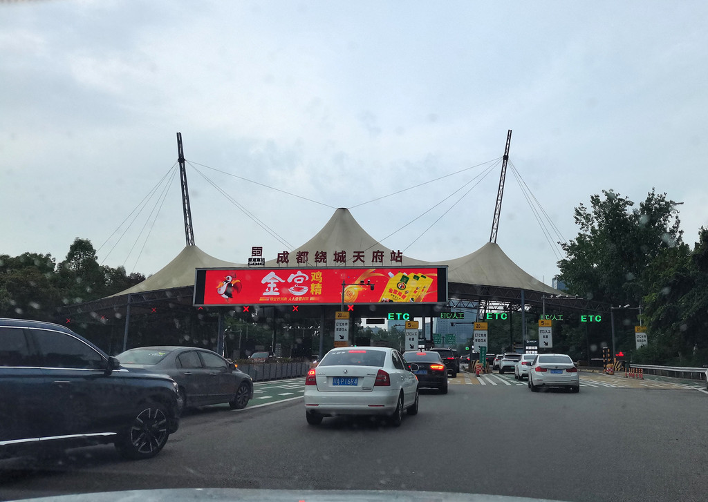 与司机顺利接头,途经天府大道,主路上下8车道(外加辅路4车道),高楼林立,绿化极好,赏心悦目,俨然一条城市景观大道,颇有视觉震撼之感。