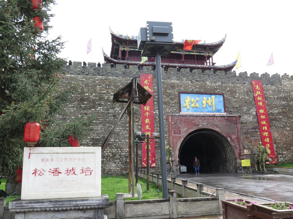 松州,是一座兴盛于唐朝的古城,因当年长满了参天的松柏而得名。古城墙门堡,气势非凡,始建于明太祖洪武十二年,松州卫和潘州卫合并为松潘卫时。城墙的长度、高度、厚度和浮雕石刻的精美在民族地区首屈一指。