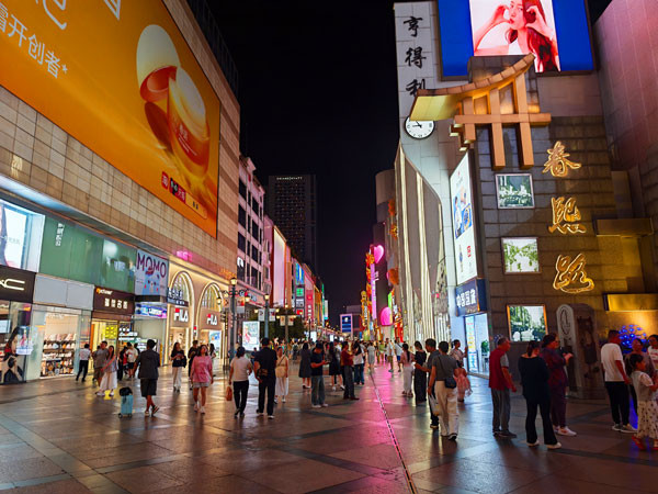 来到夜色阑珊中的春熙路只见这里灯火辉煌,热闹非凡。眼前高楼大厦耸立,现代化的建筑与传统的川西风格相互交融,展现出成都这座城市的包容与创新。这里不愧为成都最具代表性的商业步行街。