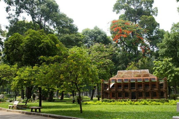 顺化各停留一至两天。 把调整计划和票都搞定后,我们开始逛西贡,要去的地方不远,就步行吧。 先去统一宫,大概和节假日有关,统一宫门口人山人海,我没有不去凑热闹,就在门口拍几张照片,算到此一游吧。