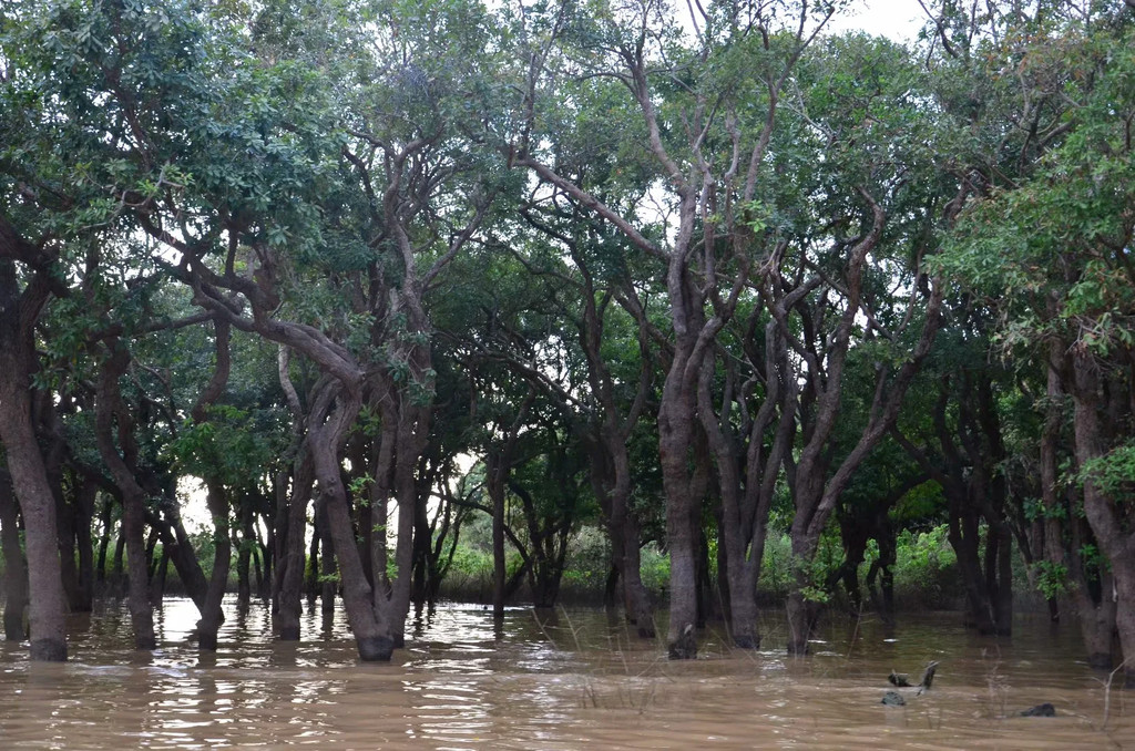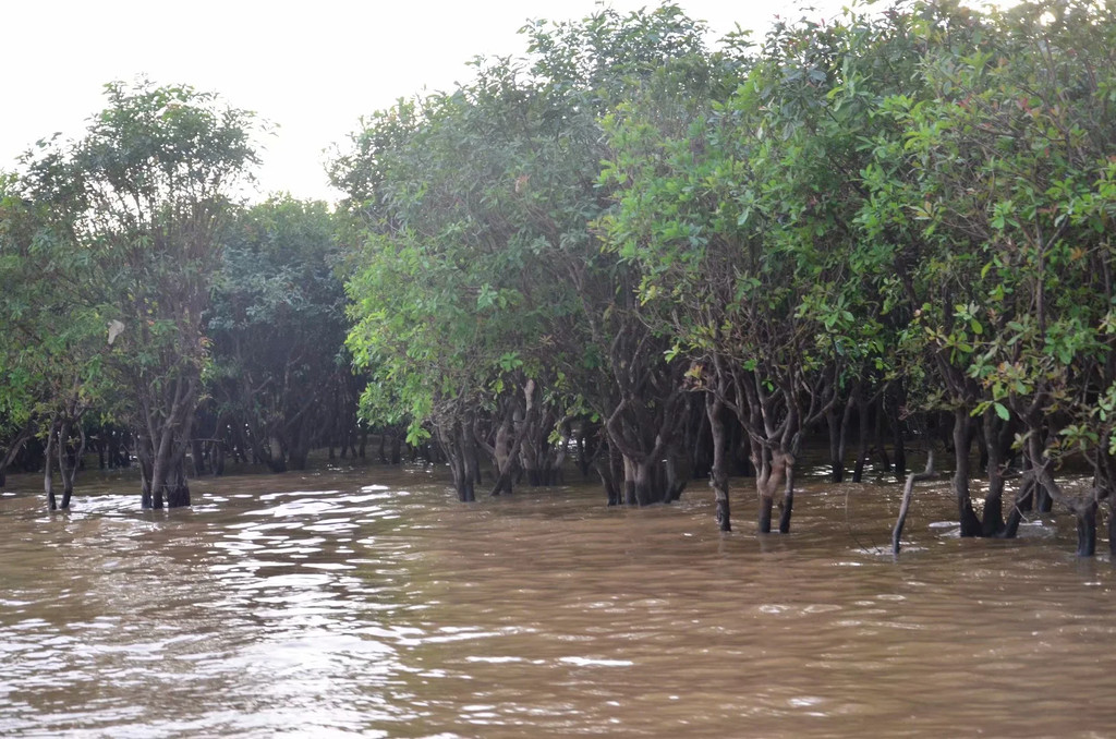 照片描述:12月5号,洞里萨湖日落。水上森林