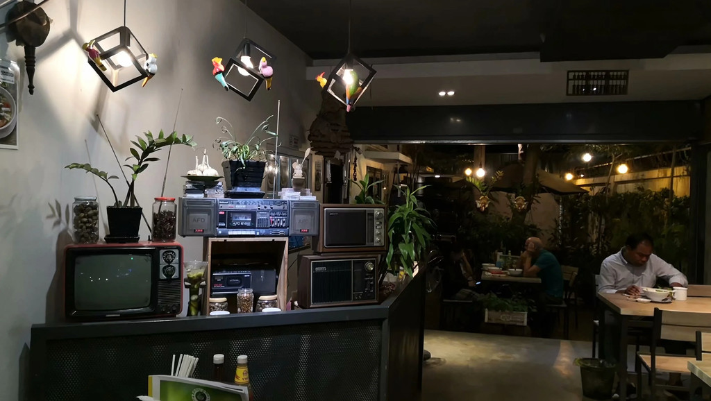 到酒店门口,从阿东的车上下来,等他车开远了,我们才去吃晚餐,——搞得我们好像还不好意思一样。酒店不远处的巷子口有一家小店,外表朴实,很怀旧的风格,每次从那里经过,我们都想进去看看,今天晚餐正好就是它了。食物品种不多,好像只有米粉,价格也不贵,如果住在附近的话,推荐去尝试。