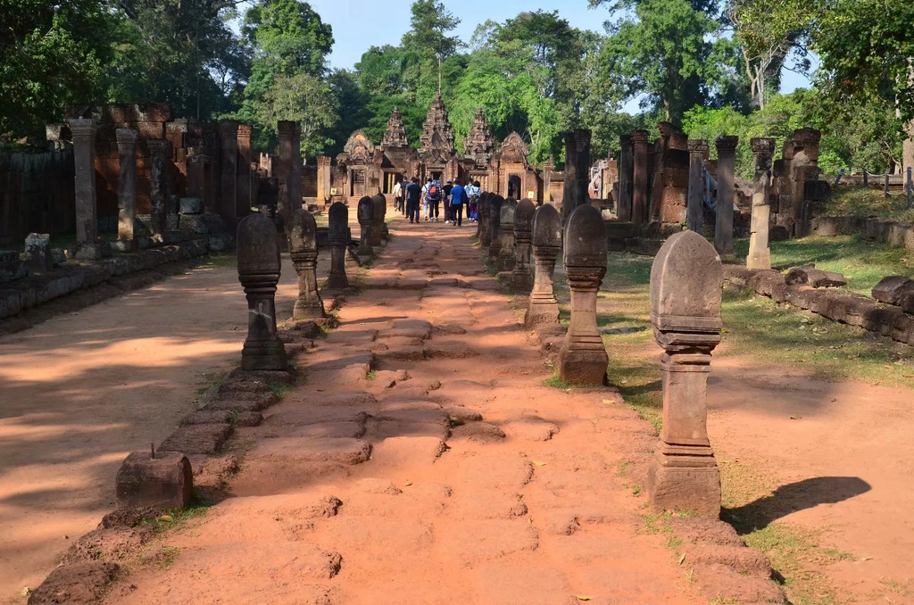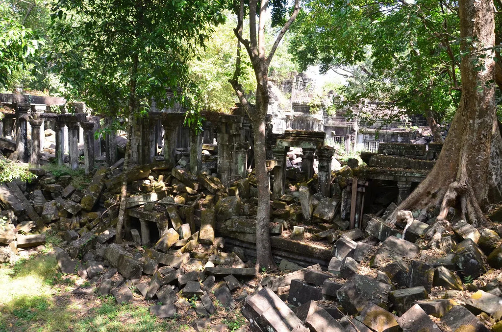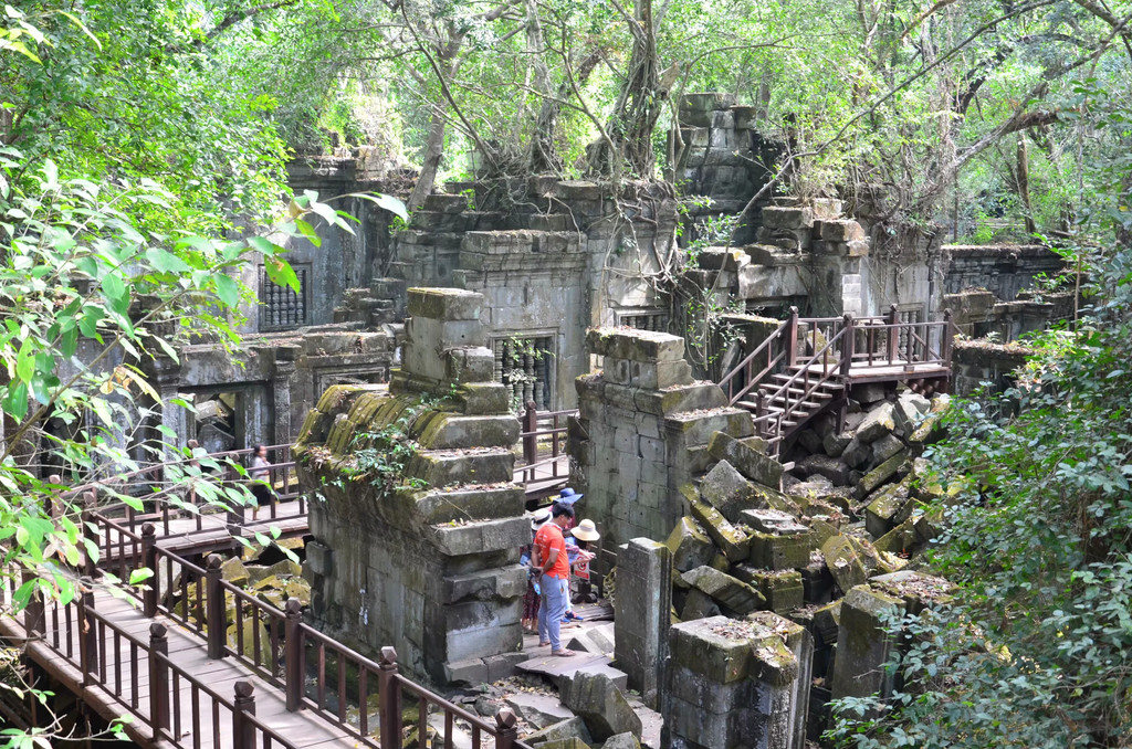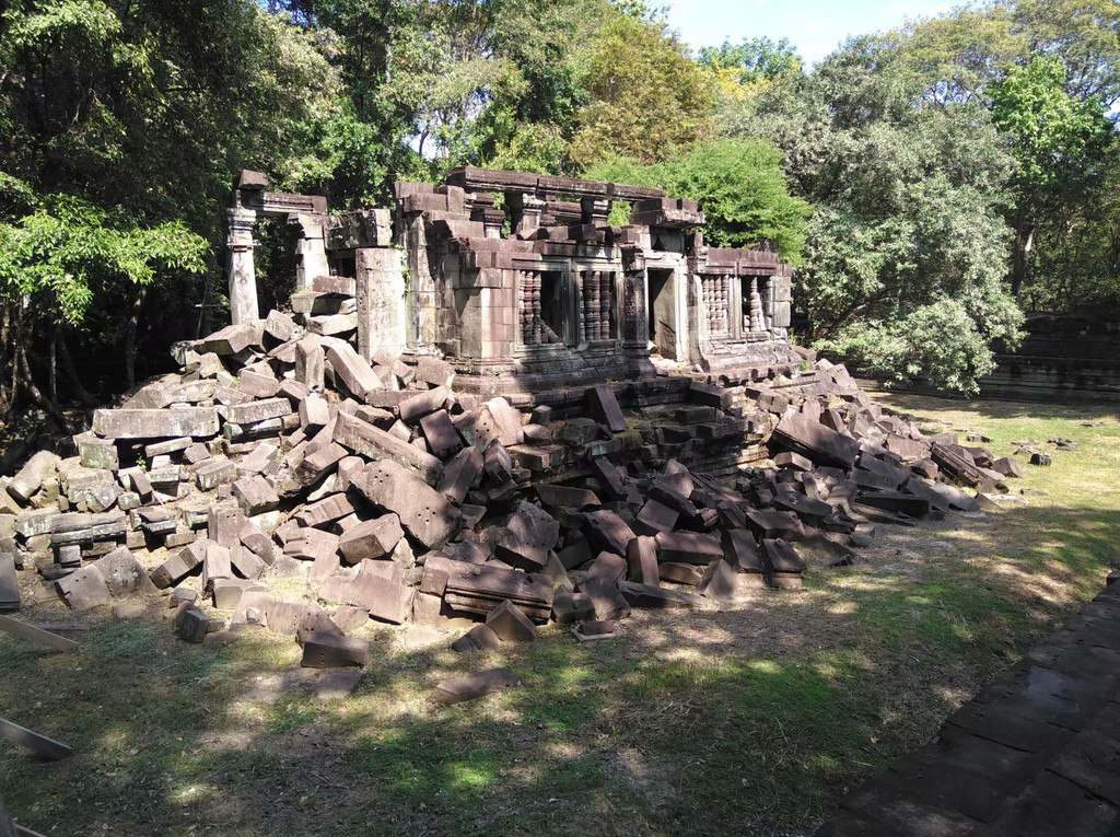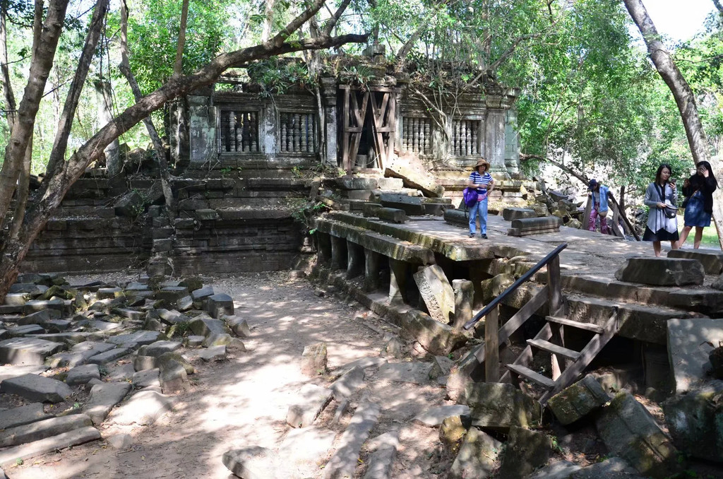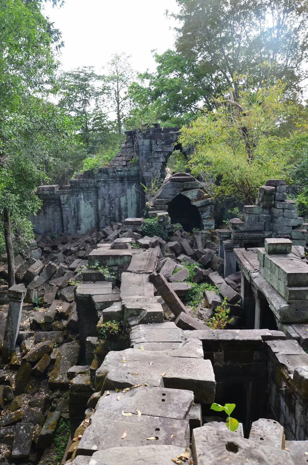 崩密列又叫荷花池,需要另外购票,5刀。其规模与设计风格几乎和吴哥寺一样,但到处都是坍塌的石块,一片废墟状,只是搭了木栈道供游客行走。因为距暹粒市中心较远,又未修复,所以来的游客并不多。