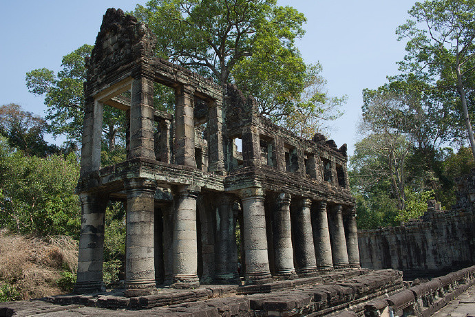 靠近东门的藏经阁,是一栋吴哥独一无二的两层石构建筑,如同希腊的古代神殿。没有人知道为何在规模浩大的吴哥古迹群中出现了这样一栋古罗马风格的建筑,但有一点可以肯定,人们因此记住了圣剑寺。
