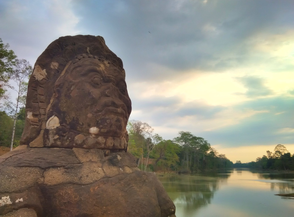 大吴哥城(Angkor Thom)是真腊王国吴哥王朝的国都,又称通王城,是东南亚历史上最宏伟的都城,鼎盛时人口达上百万。曾多次毁于战火,后几经重修,最终在1426年被废弃。Angkor在梵语里是城市的意思,Thom的意思是大,百万人口当年确实是大城市。