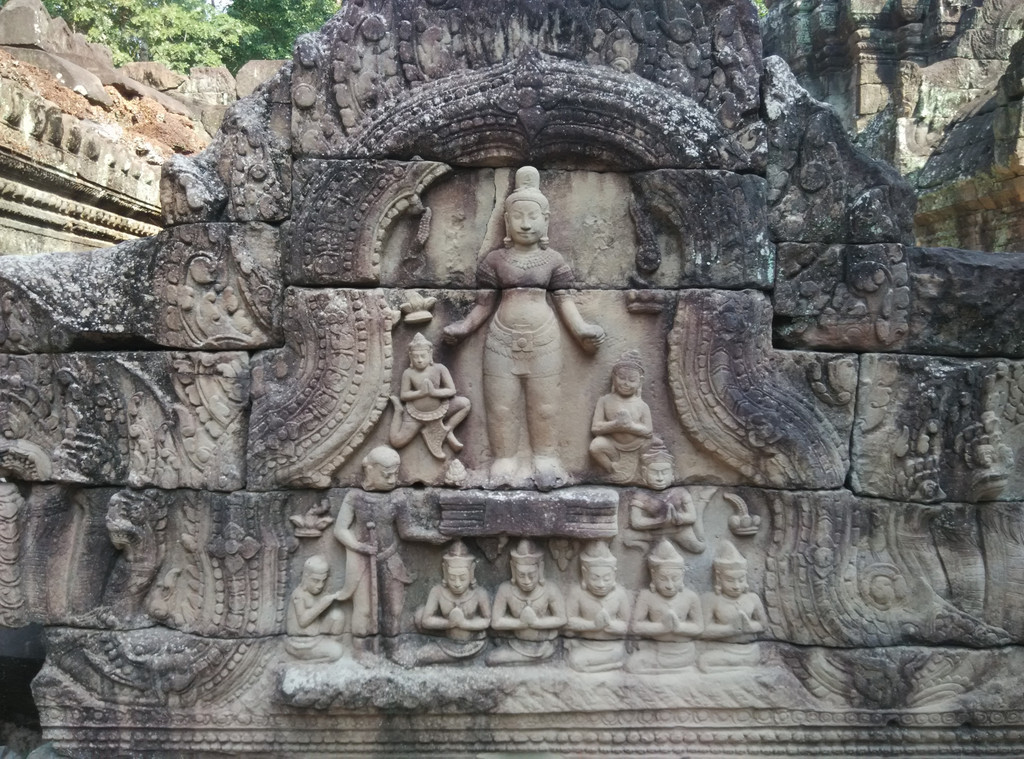 寺庙比较小,寺庙周围曾经住过很多的僧人,至今还可以看见他们居住过的痕迹。塔逊寺的墙壁上很多雕刻都保存的比较完好,女神们姿态优美,表情也很丰富。