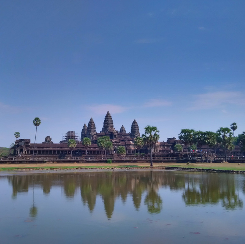 吴哥寺,又称小吴哥,被称作柬埔寨国宝,是世界上最大的庙宇类建筑,同时也是世界上最早的高棉式建筑。吴哥寺最初的名字是Vrah Vishnulok,意为“毗湿奴的神殿”,中国佛学古籍称之为“桑香佛舍”。苏利耶跋摩二世在位时为供奉毗湿奴而建,三十多年才完工。吴哥寺是吴哥窟古迹群中最精华的部分,也是柬埔寨早期建筑风格的代表。1992年联合国教科文组织将吴哥古迹列入世界文化遗产,此后吴哥寺作为吴哥古迹的重中之重,成为了柬埔寨一张亮丽的旅游名片。吴哥寺与埃及金字塔、中国万里长城、印度尼西亚婆罗浮屠千佛坛并称为东方四大奇观。