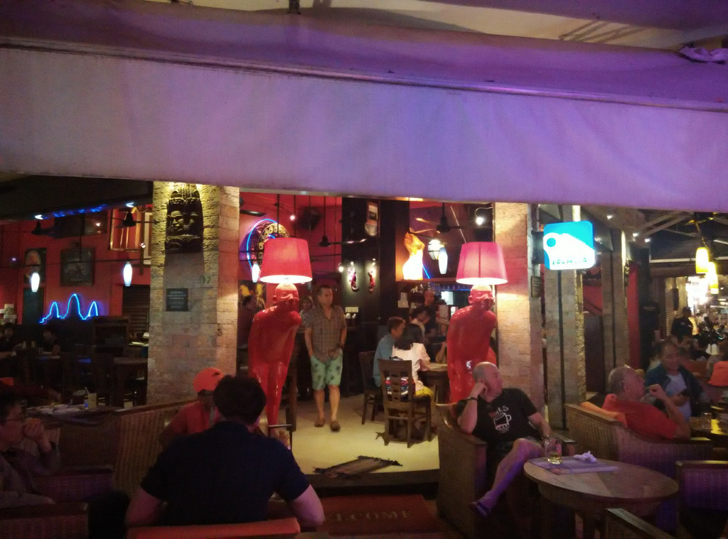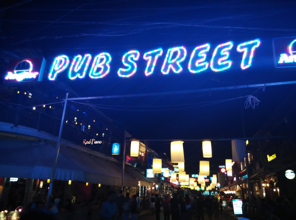 晚饭后我们自由活动,旅馆附近的酒吧街随便逛逛,大名鼎鼎的红钢琴酒吧人声鼎沸,大名鼎鼎的拐棍冰淇淋尝一个;吴哥夜市里的小商品琳琅满目,就是个有着异域风情的老城隍庙小商品市场。