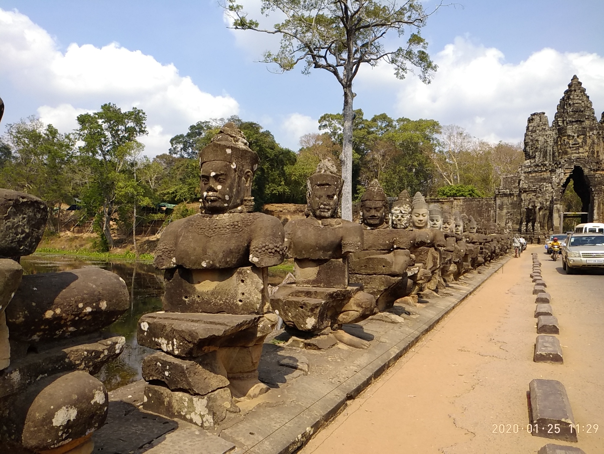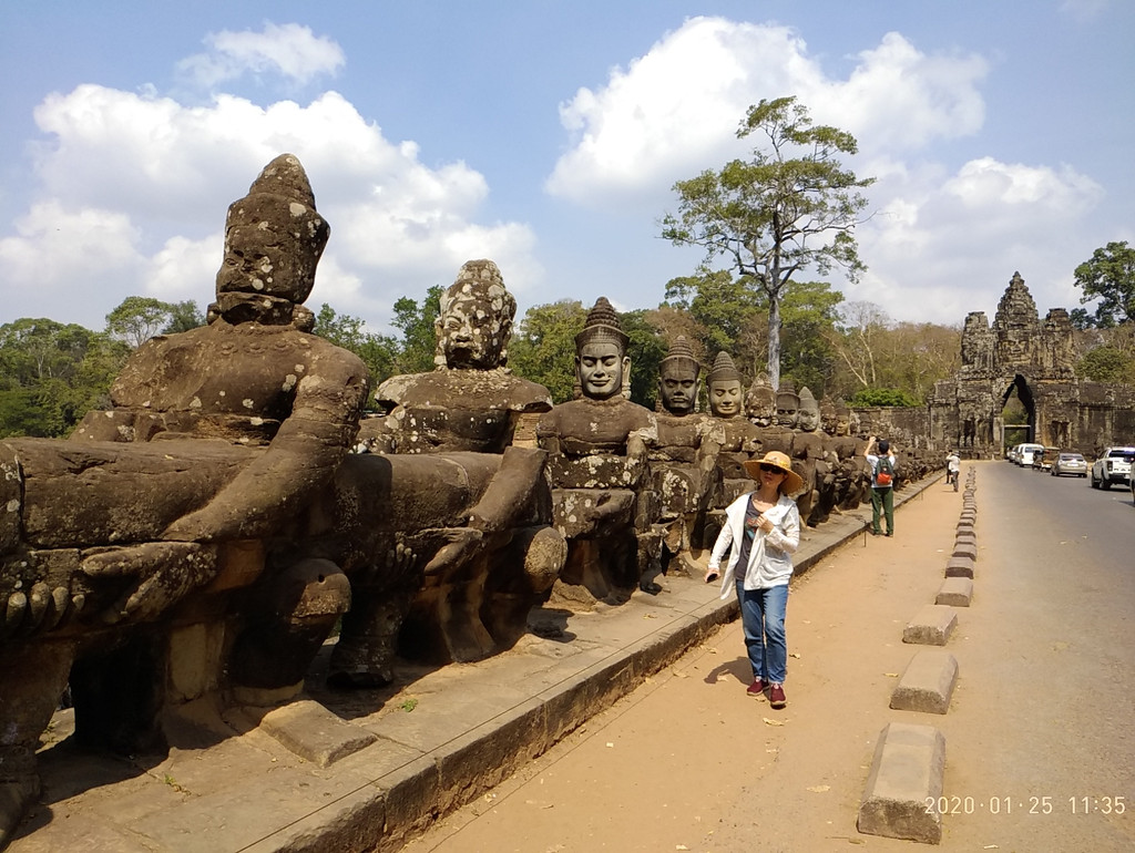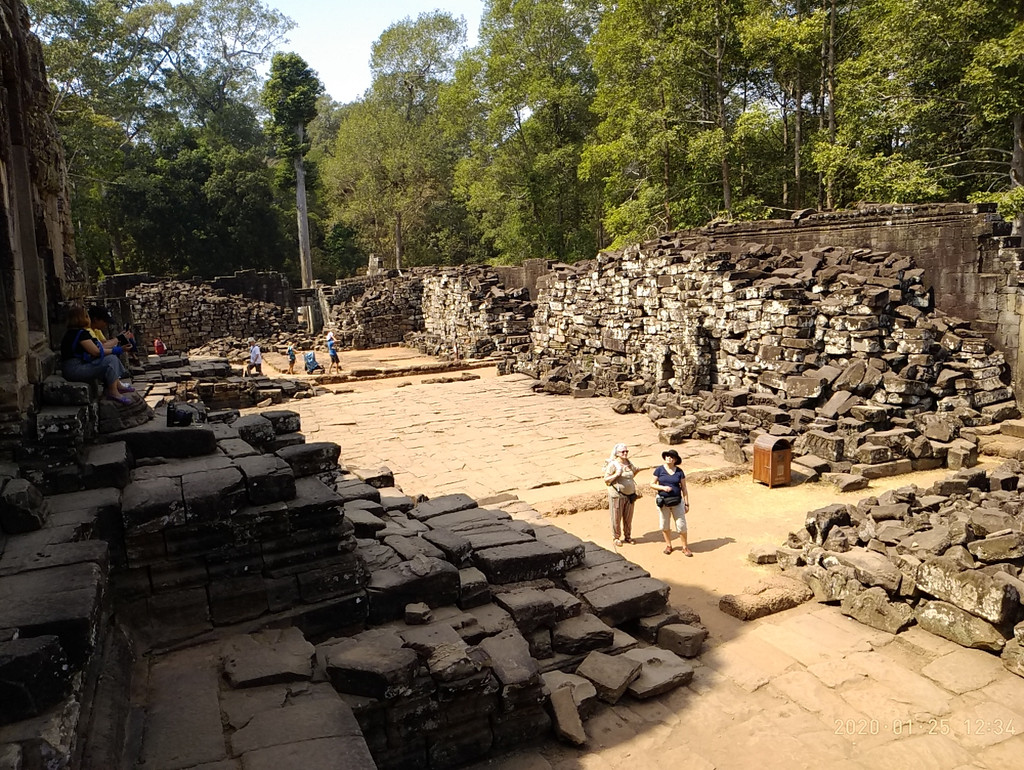 大小吴哥的内外都是平原,不见山体岩石,如此多的石材不知来自何方,更不知如何运到这里并堆叠得这么高大。唉,难怪吴哥会成为世界七大奇迹。