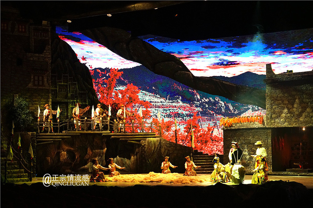 晚餐后,我们有幸在小金容中尔甲演艺中心抢先体验了一场即将正式演出的全国最大的三维室内实景歌舞剧,表演的剧目是容中尔甲亲自导演的作品《斯古拉》。