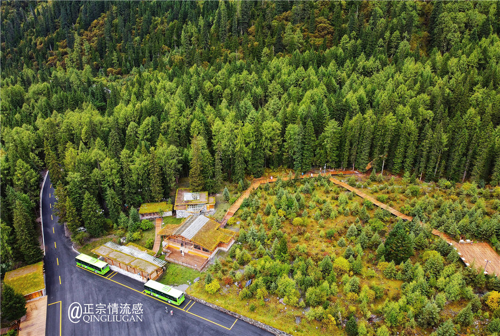 双桥沟全长34.8公里,观光车停在3800米的最高停靠处,往下沿途有多个景点车站可以上车。