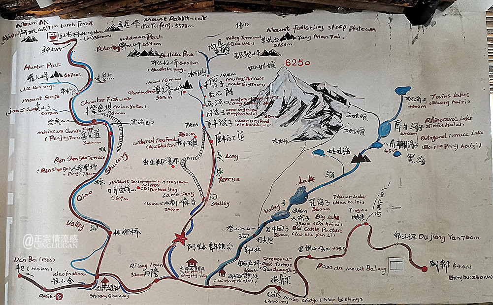 品一杯下午茶,看一份手绘图,发一会儿呆,我们决定先去四姑娘山三条沟中最便捷通景区车的双桥沟看看,这样下午4个小时的时间差不多够了。
