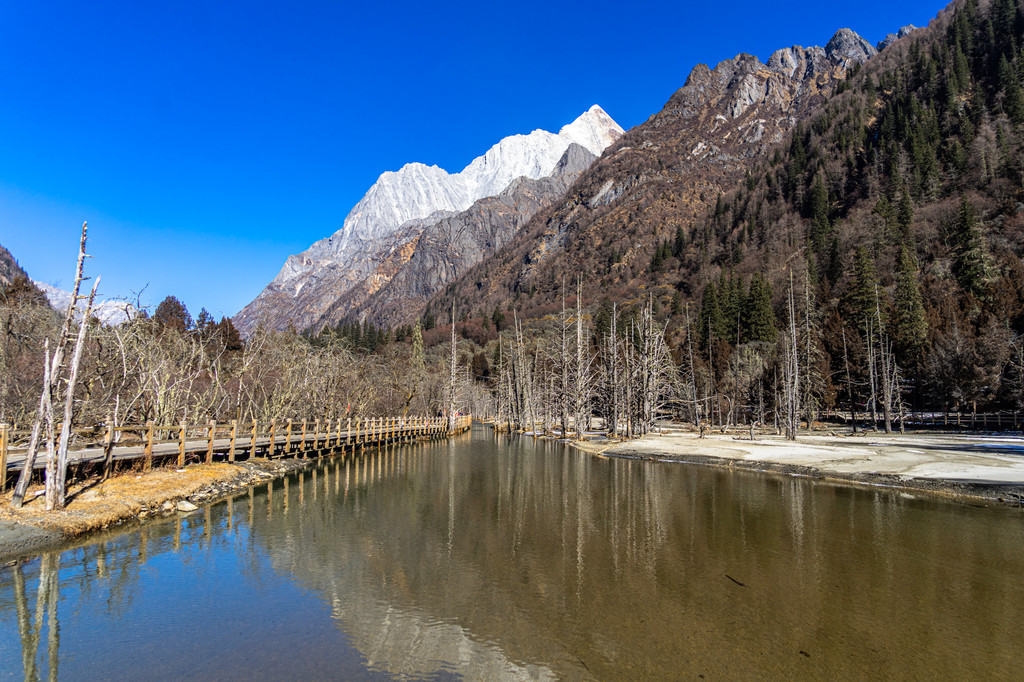 木栈道随时可以看见的雪山
