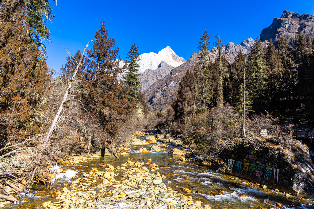 在四姑娘山跨年之旅的第一天,走进了“横看成岭侧成峰,远近高低各不同”两面皆是山,却山山不同景的双桥沟景区,整个双桥沟沟长30余公里,被称作“山峰的博物馆”,主要以雪峰、牧场、草地和森林为主,是四姑娘山中景点最为集中,最美丽的一条沟,同样也是唯一一条有观光车的沟,在双桥沟可以乘车游览也可以根据自己的体力乘坐观光车以后选择漫步游览。沟内有成片的桦树林、柏杨林及成片的沙棘和红杉林也有猎人峰、玉兔峰、布达拉峰等雄俊山石。