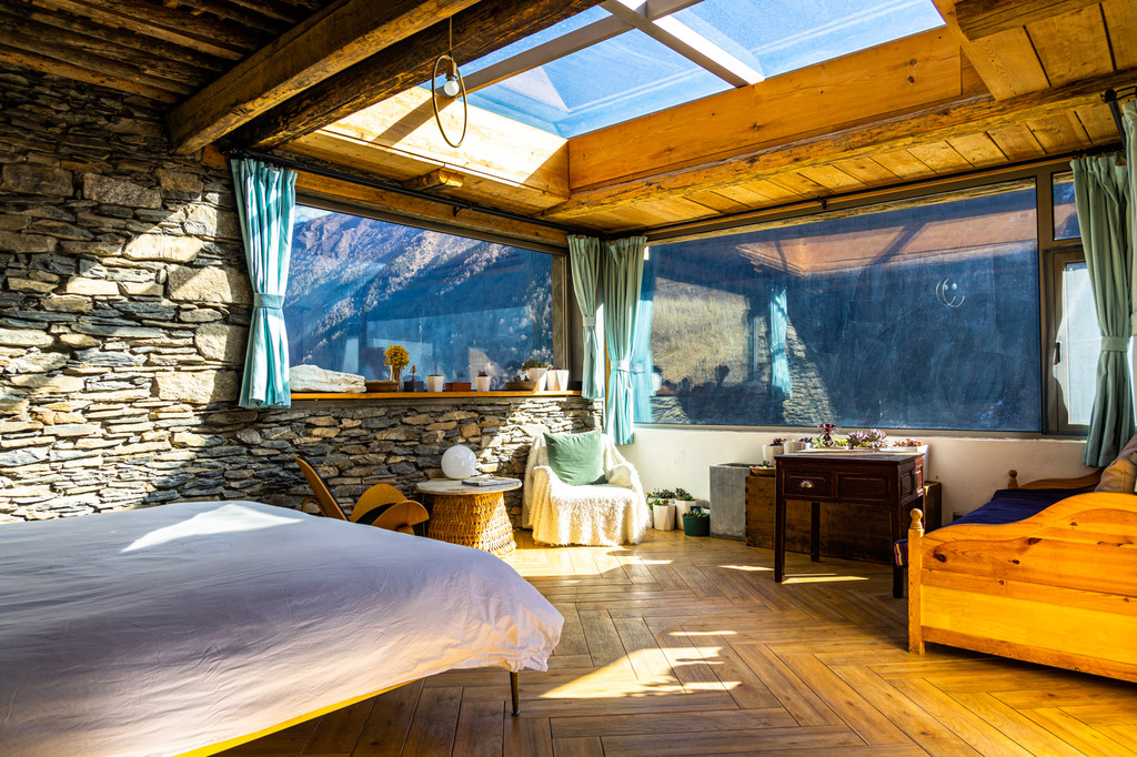 四姑娘山位于四川省阿坝藏族羌族自治州小金县四姑娘山镇境内,距成都220公里。自驾到四姑娘山镇在测温登记过后居住在了一处抬头可以仰望星空,开窗便直面四姑娘山四座雪峰且具有浓郁地方特色的“空山”民宿。民宿距离长坪沟景区并不远,不仅可以看到美丽的自然风光也可以撸猫撸狗,特别是午后闲暇之余很适合一个人坐在露台遥望雪山晒晒暖阳。