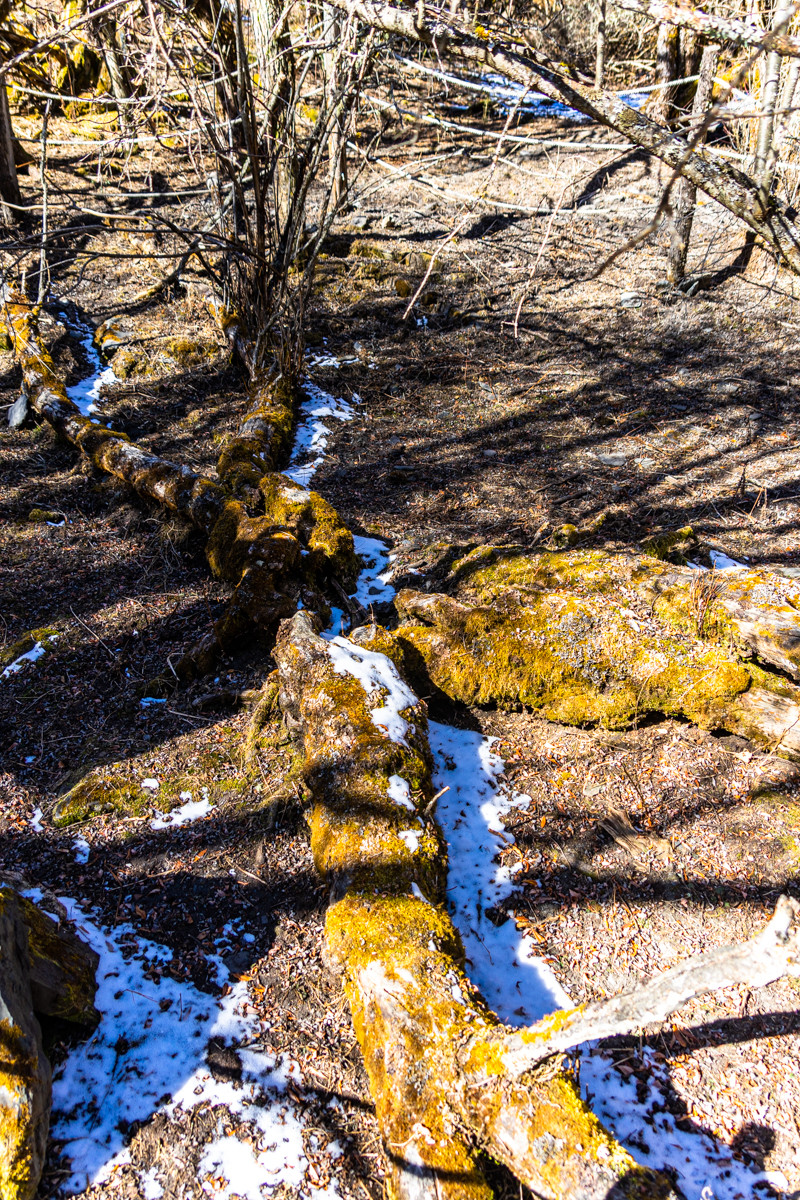 由于中途拍照占用时间较多,所以长坪沟的徒步只走到了上甘海子,后面的景点没有办法继续,在下甘海子的补给点吃完泡面烤肉之后便沿马道返程,相对于木栈道的风景,马道也是很值得一看,虽然路灰尘比较大,但是风景却丝毫不输。