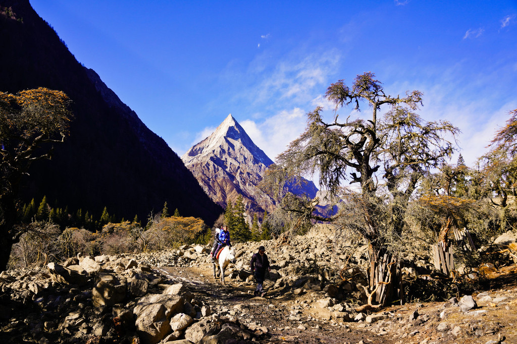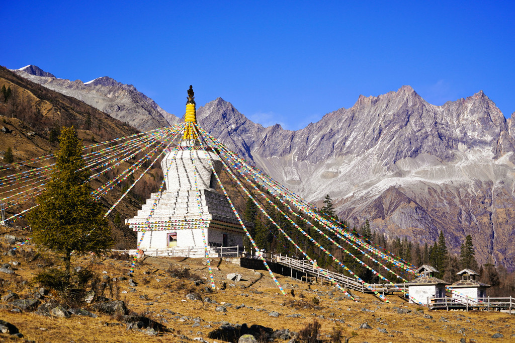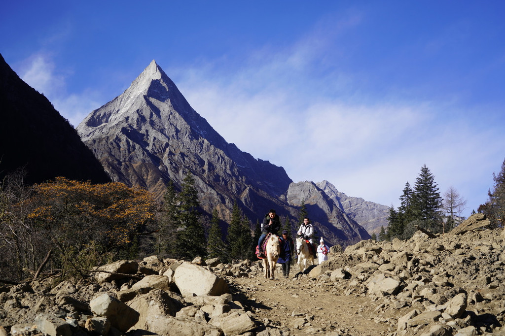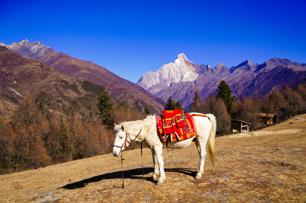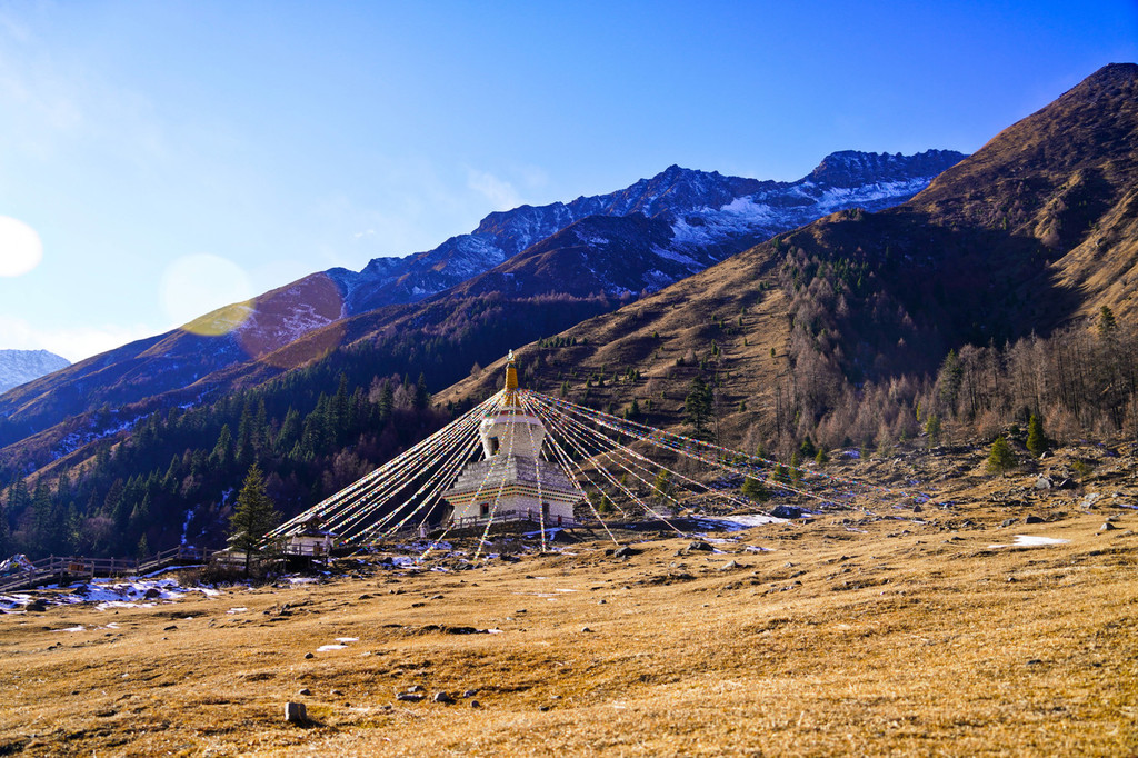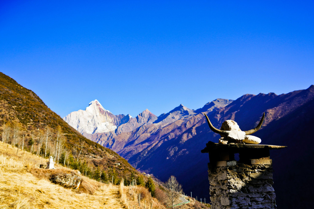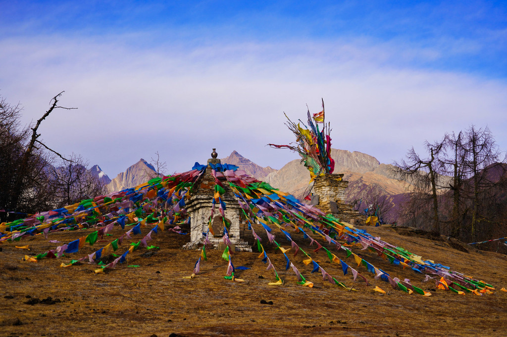 为照片关联地点 为照片关联地点 为照片关联地点当我们走到朝山坪,神圣的四姑娘山触手可及。经幡飞舞,飞鹰呼啸而过,两旁山色深深,浸润着皑皑白雪,犹如行走在古老原始的传说中。