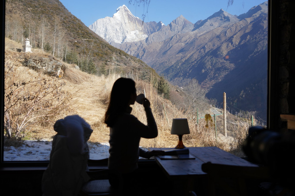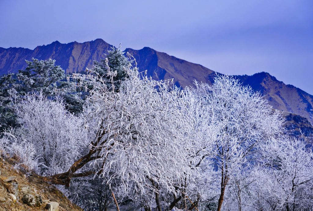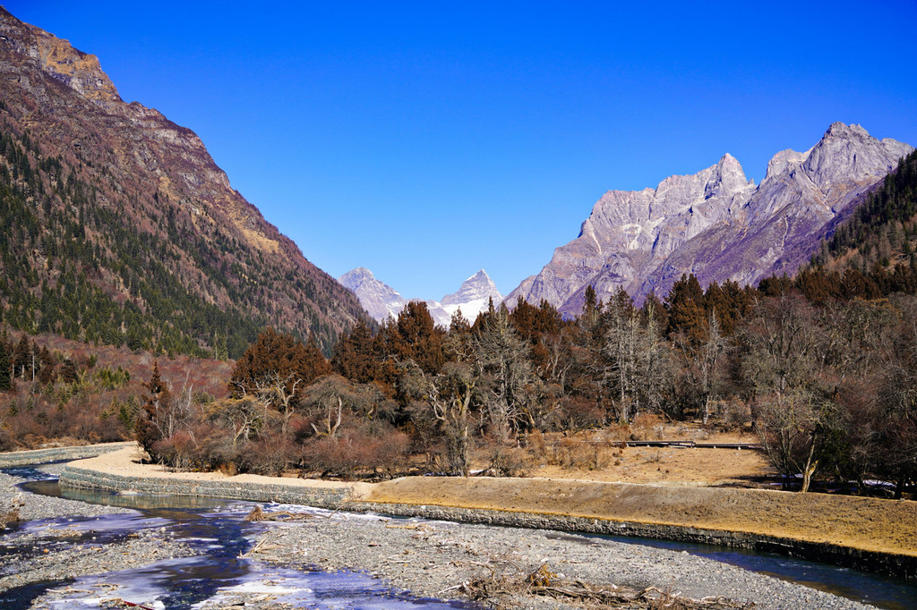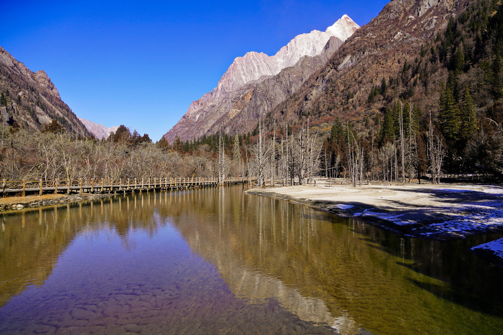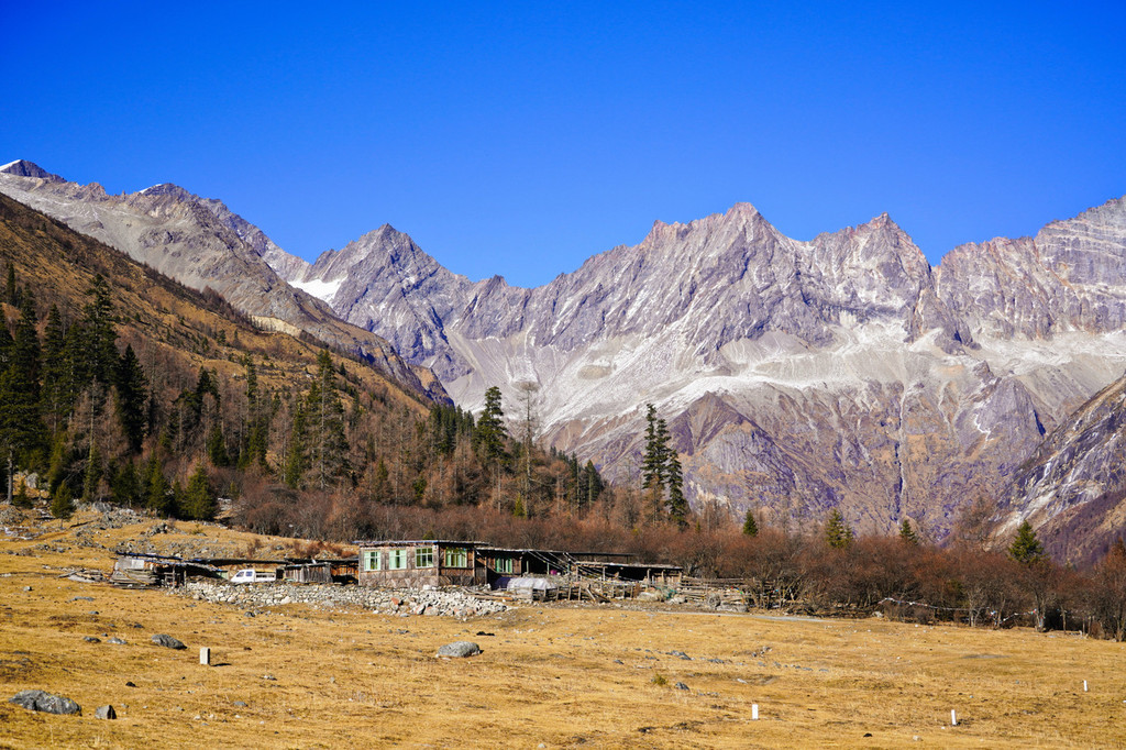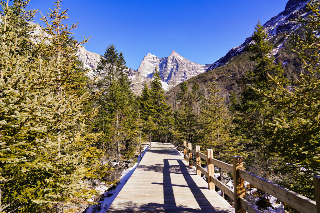 为照片关联地点 为照片关联地点当地人常说,看四姑娘山要数夏秋季节最美。端午前后的四姑娘山的茵茵草地上,百花齐放,就像是铺长了一张彩色地毯,美艳至极。而秋高气爽之时,正是观赏红叶彩林的好时节。漫山遍野的彩林,就像是一道永不落幕的晚霞余晖悬挂山间,美妙绝伦。然而,我却喜欢银装素裹的冬季,迎着冬日暖阳,漫步四姑娘山,没有人潮的喧嚣,独享这一山一沟的宁静之美。