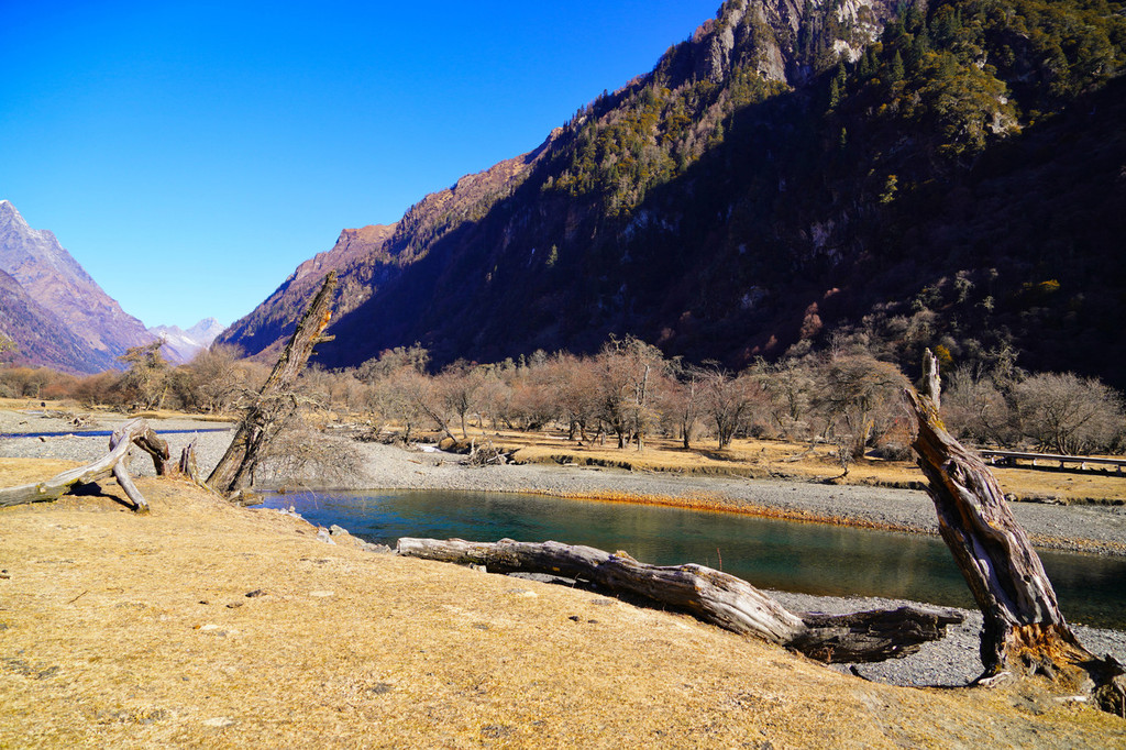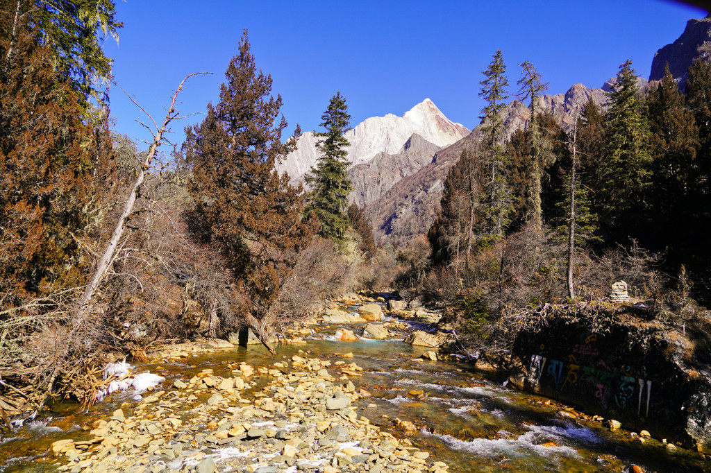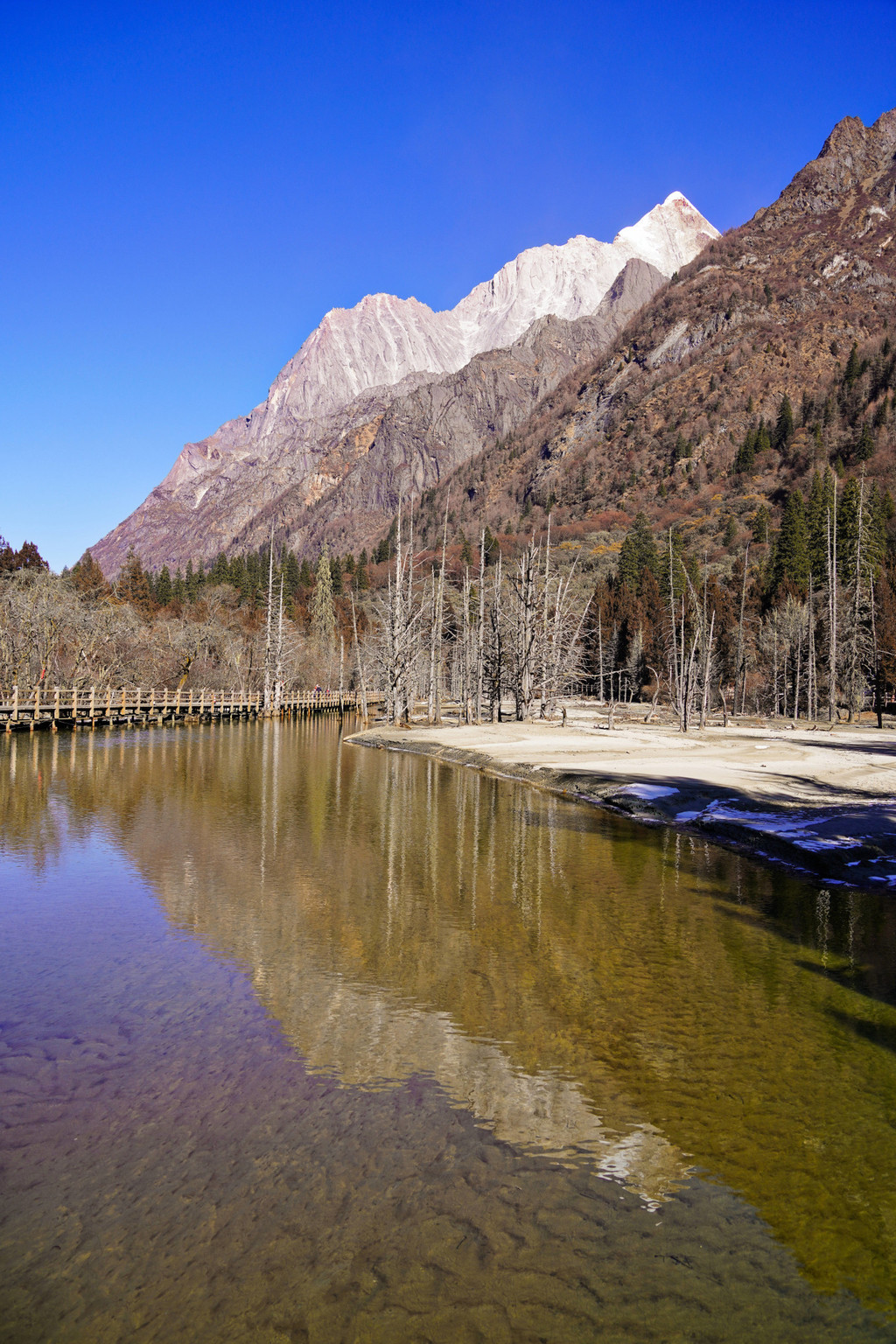 为照片关联地点“横看成林侧成峰,远近高低各不同”。双桥沟里两面皆为山,然而山山有别,景景各有致。从了无边际的高山灌木草原,到精致若画的盆景滩,再到如玉盘落珠的珍珠滩,以及仰望巍峨雪山之巅的红杉冰川观景台。整个双桥沟的景色,就是一组随着海拔而攀升的景观长廊,立体直观,又五彩斑斓。