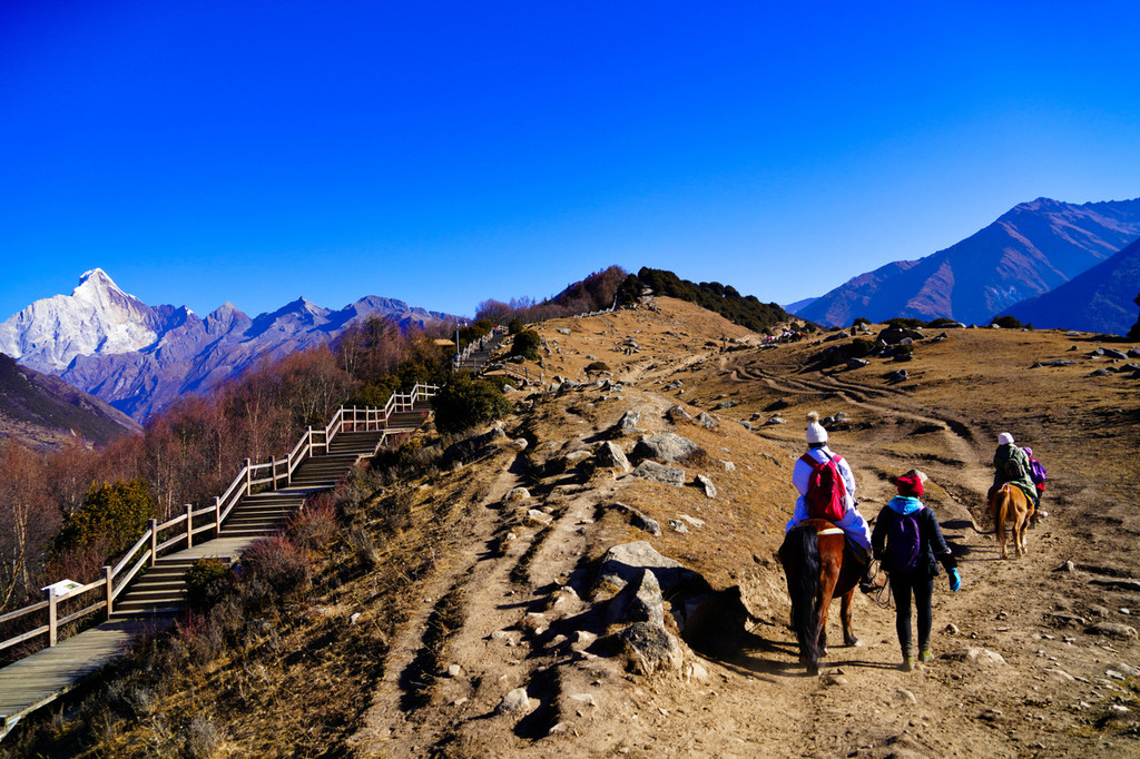 为照片关联地点 为照片关联地点于是乎,我们一起在四姑娘山跨年啦! 守候了2020年的最后一次落日余晖,迎来了2021年的第一缕阳光。 而后到几天,以坐车、徒步、骑马等不同形式,穿越于四姑娘山的“三沟一山”中,邂逅了最迷人的“东方阿尔卑斯山 ”,冬日暖阳常伴,美景不断,此生难忘!