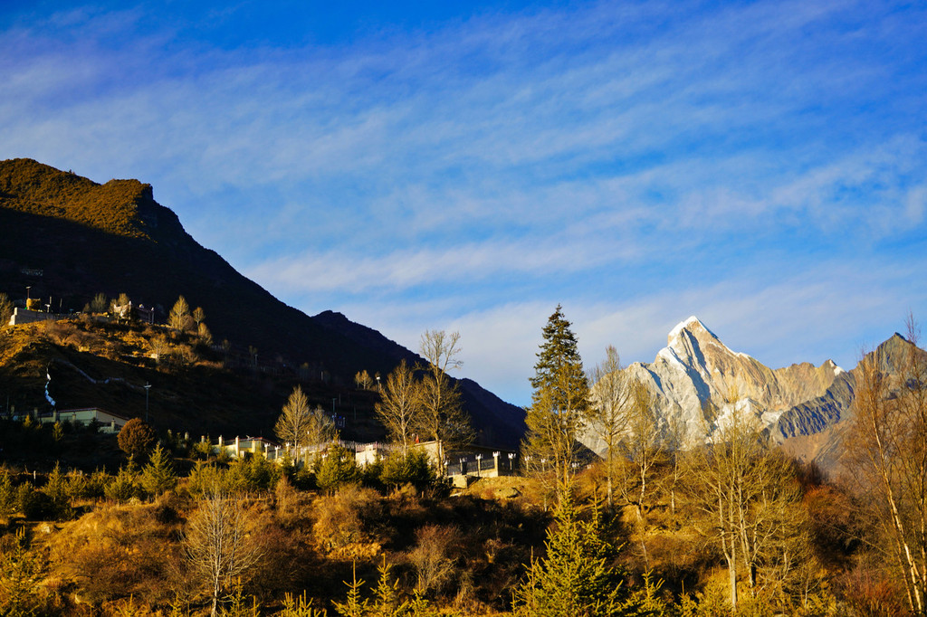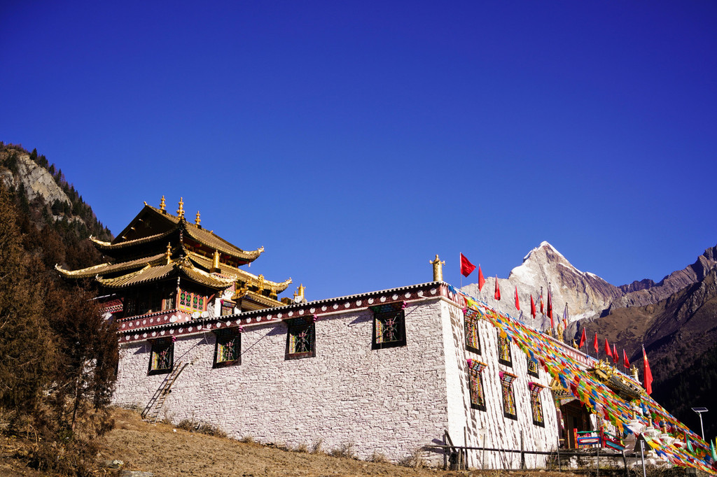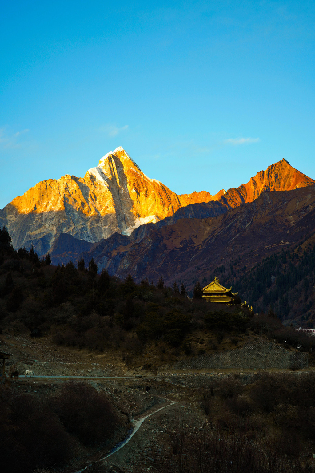 为照片关联地点 为照片关联地点 为照片关联地点 为照片关联地点如果说四姑娘山的四座峰是一串娇艳的红花,那么山峰下的喇嘛寺就是一株绿叶,绿叶衬红花。日落之时,四姑娘山因喇嘛寺而熠熠生辉。这一幅旷世美景,一定要用相机定格,记录下美好。除了用相机平拍,最佳的拍摄方式是选用无人机航拍,从喇嘛寺旁的公路起飞,自下而上将喇嘛寺立体空间与四姑娘山的四峰一同入框,一幅绝美的立体画卷,油然而生。