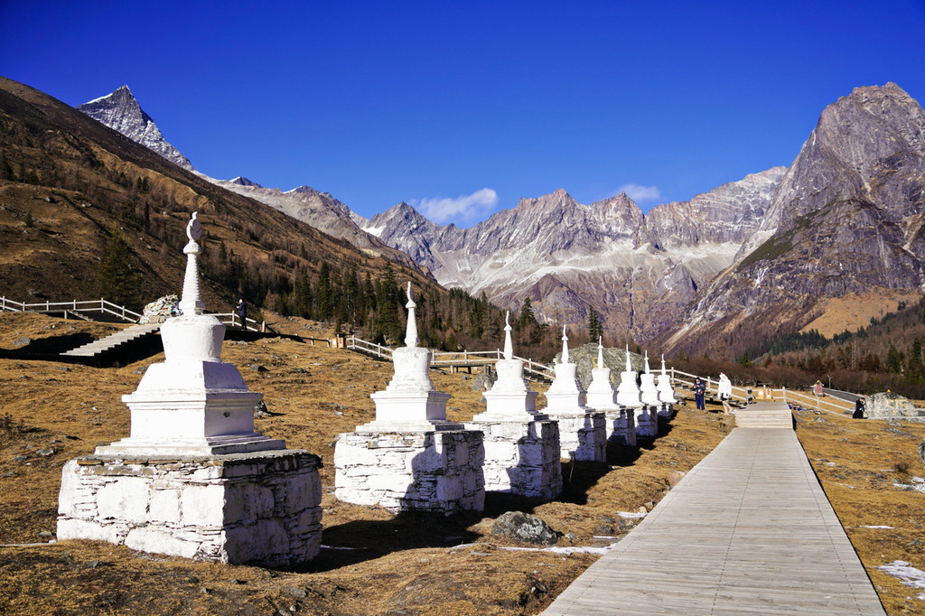 为照片关联地点 为照片关联地点 为照片关联地点 为照片关联地点 为照片关联地点 为照片关联地点 为照片关联地点 为照片关联地点 为照片关联地点再次,就是到牛棚子欣赏大自然的鬼斧神工。牛棚子是观光车的一个站点,下车就能看到一座偌大的白塔,以及五彩缤纷的经幡。与白塔隔着柏油路相望的就是布达拉峰,因其雪山造型神似西藏圣殿布达拉宫而得名。