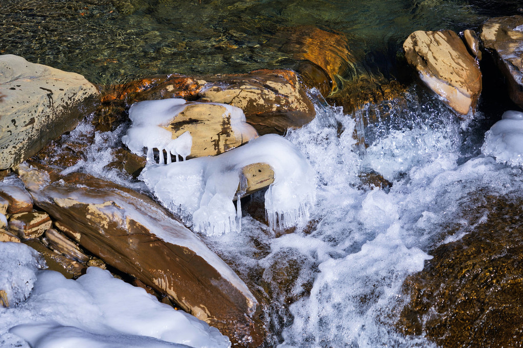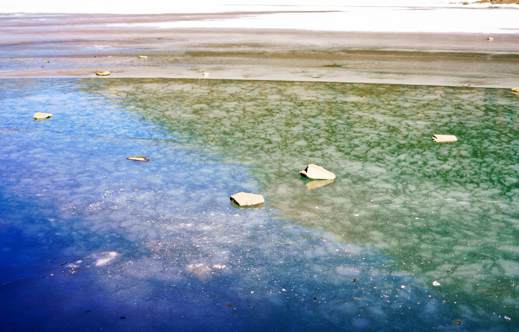 为照片关联地点 为照片关联地点穿过灌木丛林,踏过草地陡崖,历经3小时的骑行终于抵达了海子沟的第一个海子:大海子。海子沟最美的风光就是看海子,共有十余个大大小小的海子,景色各异。冬天的大海子已经结冰了,远远望去白茫茫的一片,就像是走进了仙境一样。走近一看,才发现大海子里暗藏玄机,在贝尔加尔湖畔才能看见的蓝色冰湖,其实在海子沟也能看见。结冰后大海子的边缘部分,呈现出浅蓝色、碧绿色、米白色的三色分界。每一种色彩的冰湖下面都有独特的花纹,有的如同一朵朵硕大的雪花,有的如同一朵裂开的星芒,有的如同朵朵棉花,形态各异,美妙极了。倘若时间充足,体力良好,可以选择早一点进沟,深处沟内去领略其他几个海子的美。