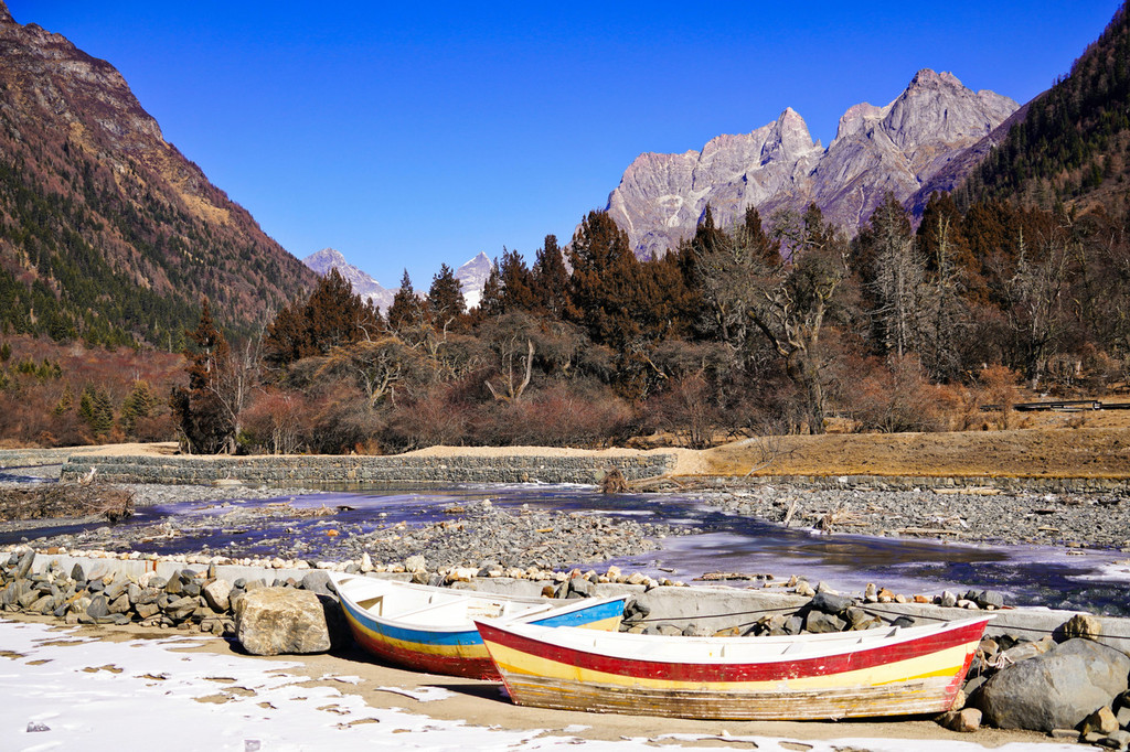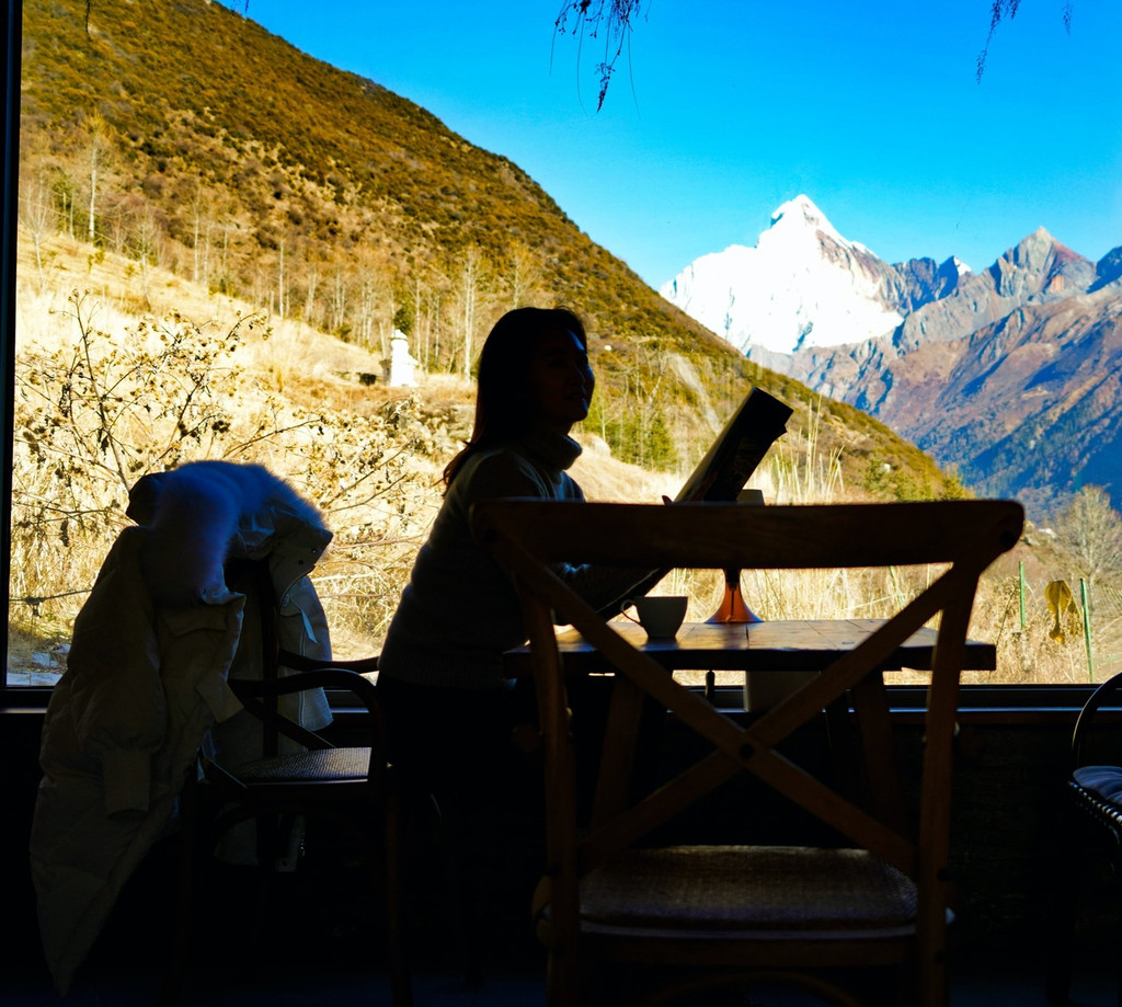 为照片关联地点冬游双桥沟,首先要在人参果坪与怪树枯木合影,拍出原始壮丽的异域之美。再到,犹如放大版微观生物宝盒般到盆景滩,欣赏大自然的奇妙之美。其次,就是双桥沟里最浪漫的网红3360咖啡馆打卡。在这里可以宅在阳光房里晒太阳,喝着香浓咖啡,悠哉悠哉的翻阅着书本,静待时间流逝,还可以去外面的露台拍天空之镜。3360咖啡店二楼的露台,有一片拍着天空中之镜的玻璃平台,想与雪山的秀美容颜合影,一定不能错过。在楼下还有小清新的白色吧台网红拍照打卡点、以及彩色木船拍照点,彷佛来到了洱海双廊,妙不可言。
