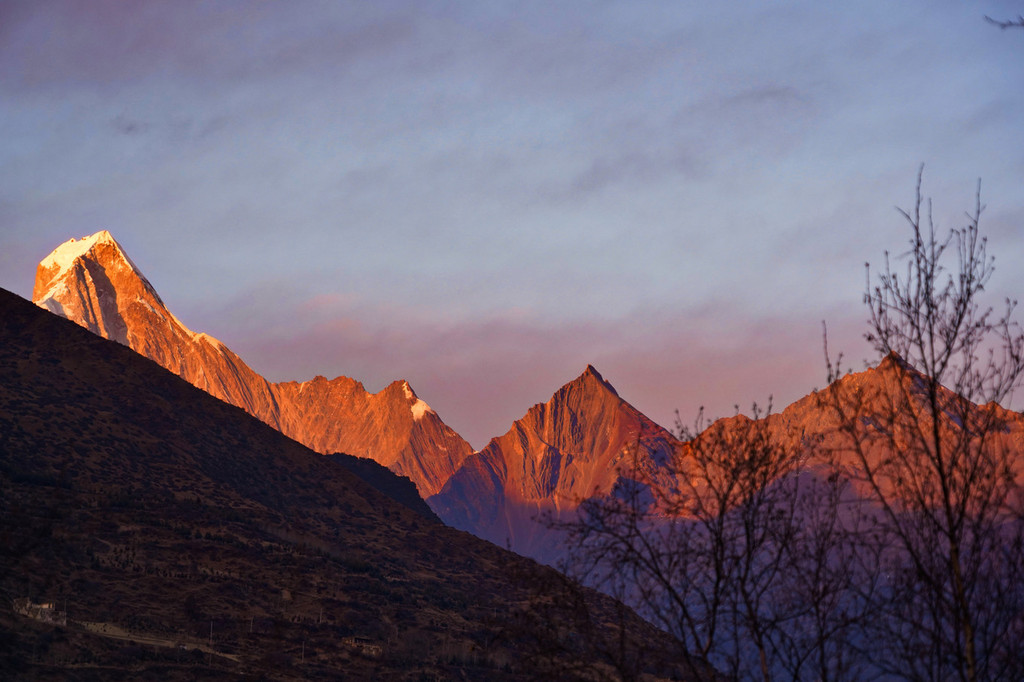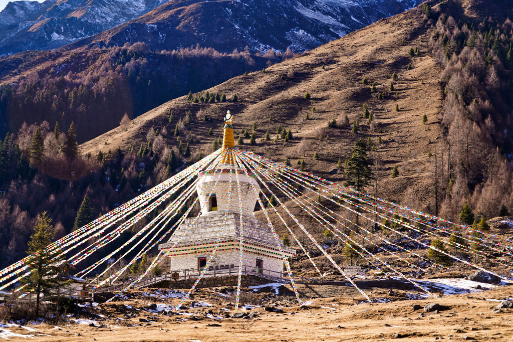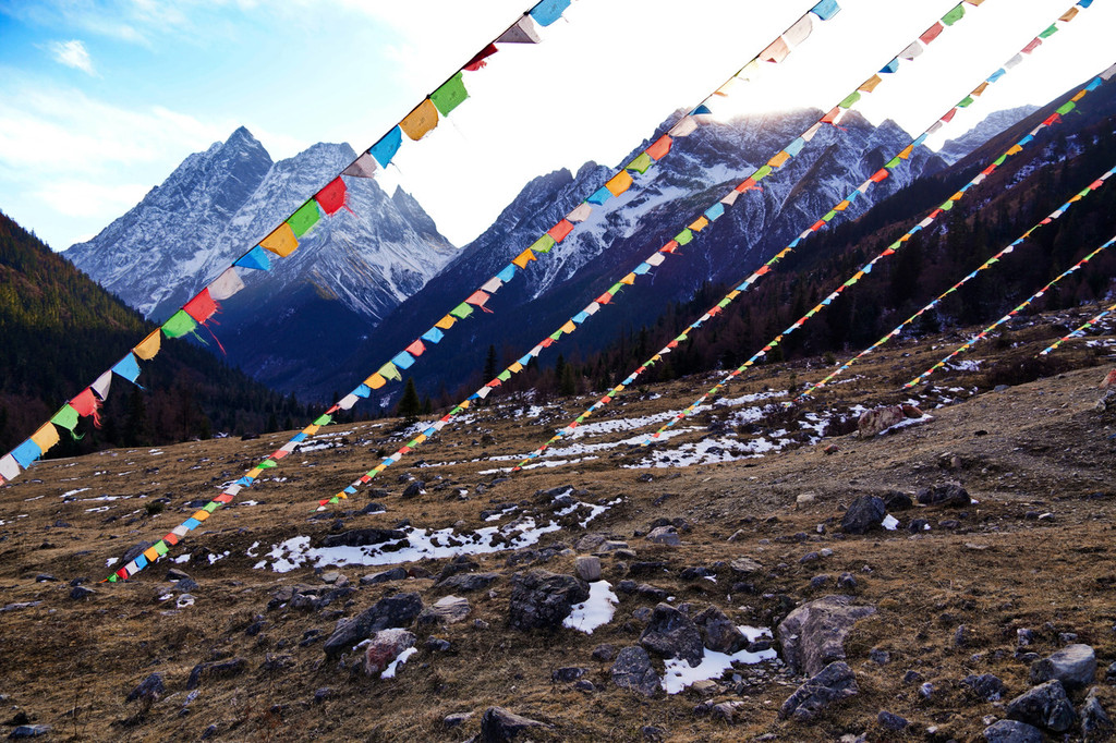 为照片关联地点 为照片关联地点 为照片关联地点 为照片关联地点海子沟朝山坪,拥有一览四峰全貌的绝佳视野。海子沟的朝山坪因该地为传统朝山会的举行地而得名。实际上,朝上坪还是一处欣赏四姑娘山全貌的绝佳平台。顺着巍峨的山势向上,在五彩经幡飞扬的山坡上,掠过斑驳成影的树梢,方可一览四姑娘山四峰的美貌。山颠有日落金光,山间有树枝剪影,山下脚有五彩经幡,一幅色彩缤纷的自然画卷,深深的烙刻在人们心中,妙不可言。