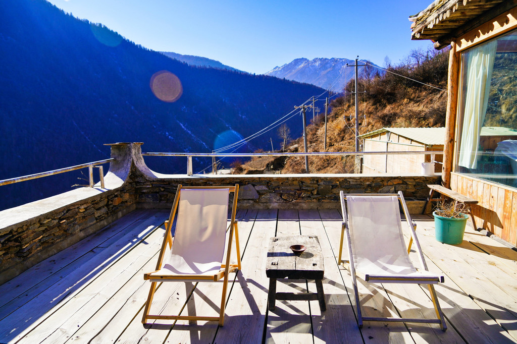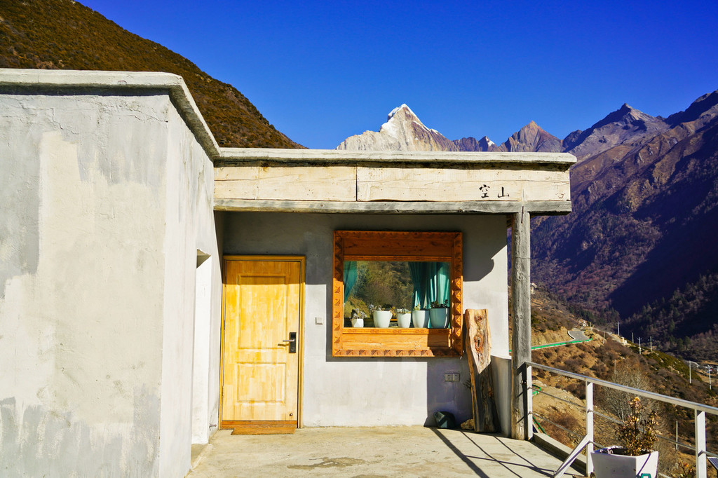 为照片关联地点 为照片关联地点在四姑娘山镇上,密密麻麻散布着许多民宿。 一栋依山而建的美宿尤为吸睛,源于古老的藏民居基础上,进行改建设计,保留了藏式特色,又融入了欧美式生活美学。将文艺情怀镶嵌厅堂,把藏式家居融入屋房。都说四姑娘山是东方人的阿尔卑斯山。那么这家神山下的空山美宿,就是东方阿尔卑斯山下最美的忘忧谷。