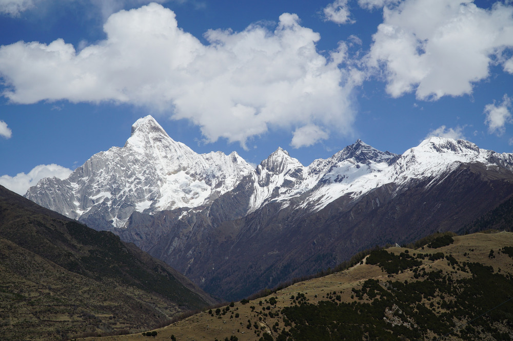 4月17日 上午在四姑娘山的长坪沟,欣赏在不同时间不同角度变化中的四姑娘山。