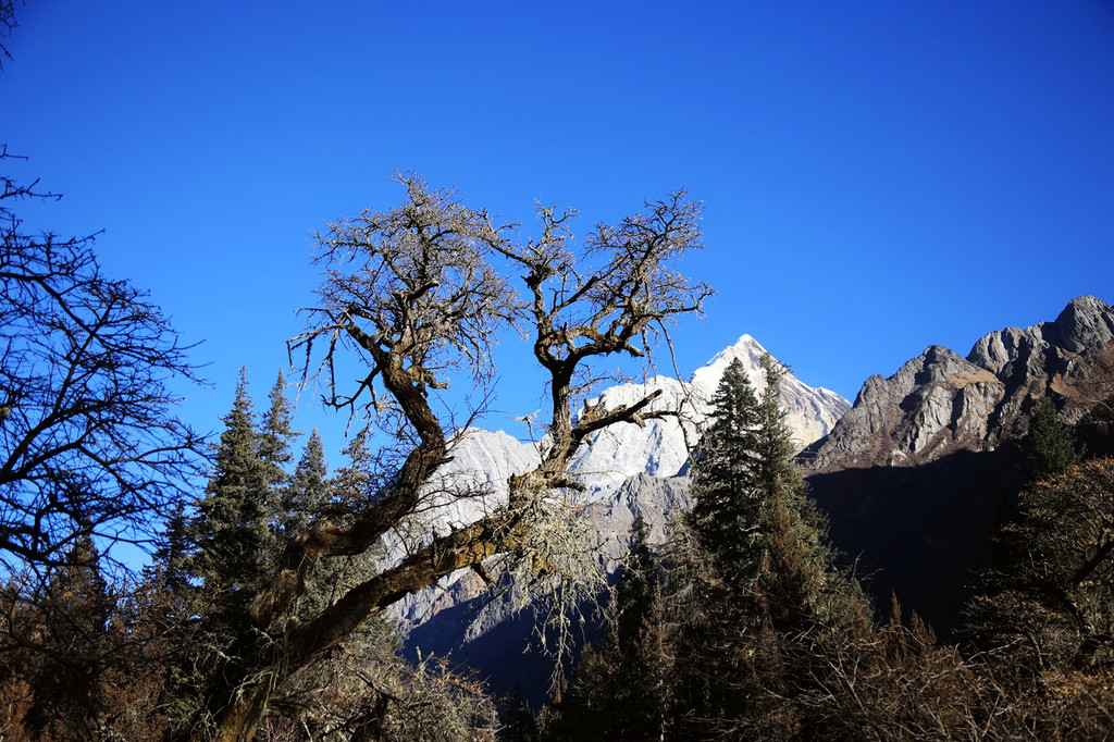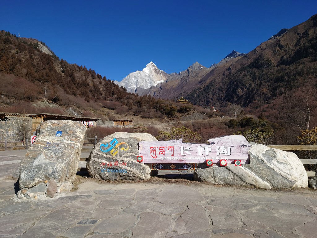 第一次去四姑娘山风景区是2020年11月初去的,当时和朋友从重庆永川搭高铁到成都,租了一部敞篷车前往。我们在那里待了两晚,逛了长坪沟,回成都后再去逛了三星堆博物馆。当时正值深秋时节树叶变妆,满山彩林,后面是皑皑雪山,很是漂亮