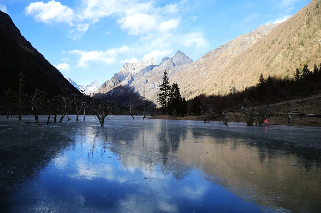 今年11月初到成都参团旅游,就有想到再去四姑娘山,后来选择去黑水看红叶、登达古冰川这条路线。再去四姑娘山我一直没忘,除了长坪沟,看网络介绍双桥沟也不错,看了下天气预报12月下旬寒流过后会有几天好天气,我立刻报了团,选在23/24日周末两日游。一是感受下雪原冰冷严寒的银白世界,一则期待四姑娘山能下点小雪