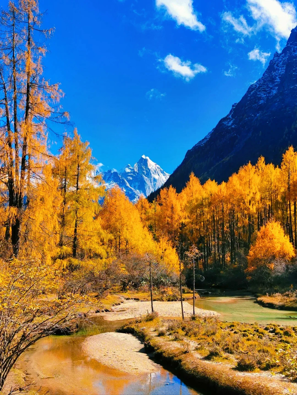 秋天的四姑娘山真的美的让人窒息!半山彩林半山雪,最是橙黄橘绿时!圣洁的雪山和金黄的彩林,明媚的色彩搭配是一种极致的视觉享受!