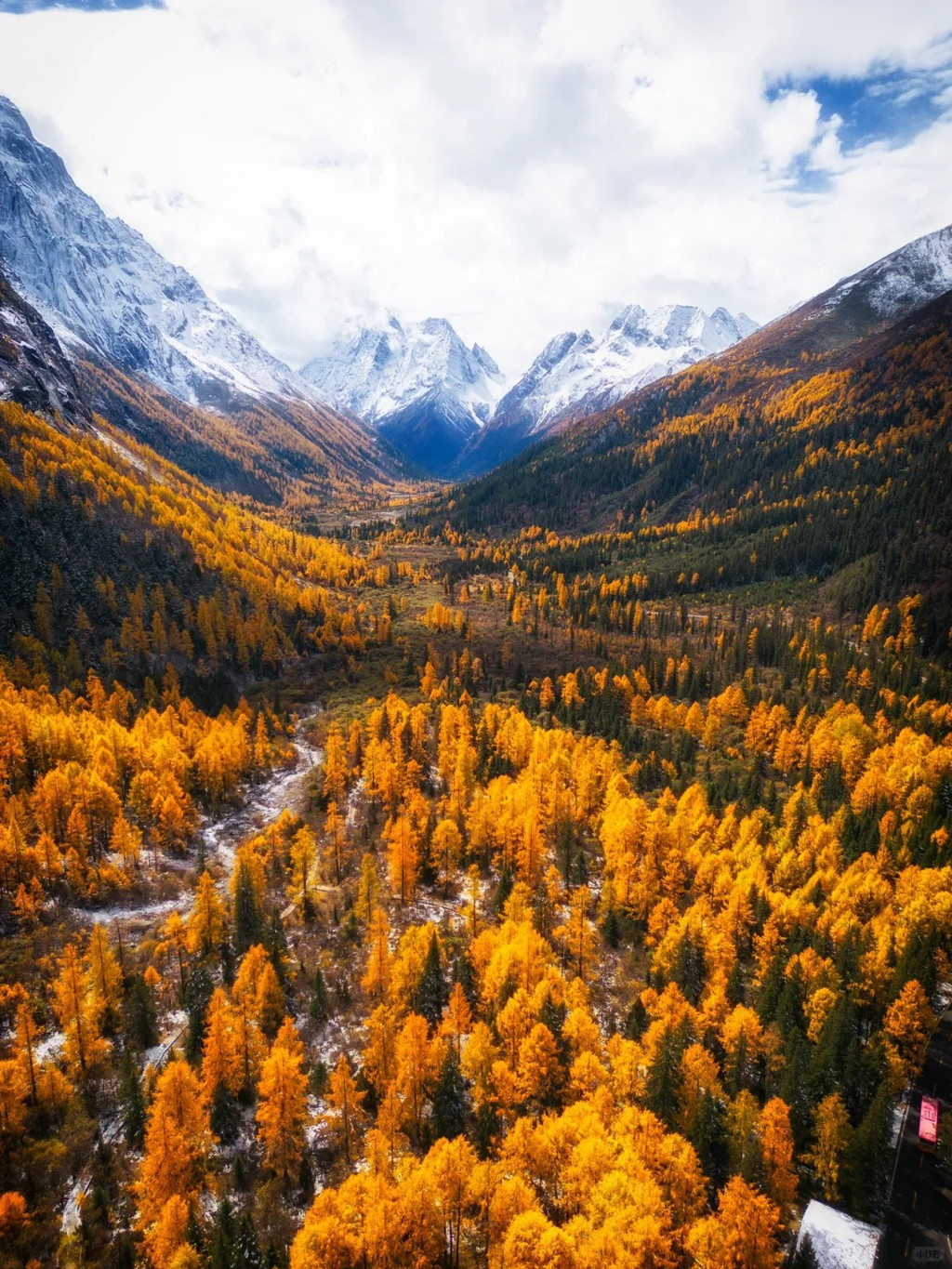 - [5天前] 筱筱旅游** 发表了小金资讯 这个秋天来四姑娘山太值了!雪山配上金黄色的树林,随手一拍都是大片既视感🏔️ 四姑娘山不仅景色绝美,还
