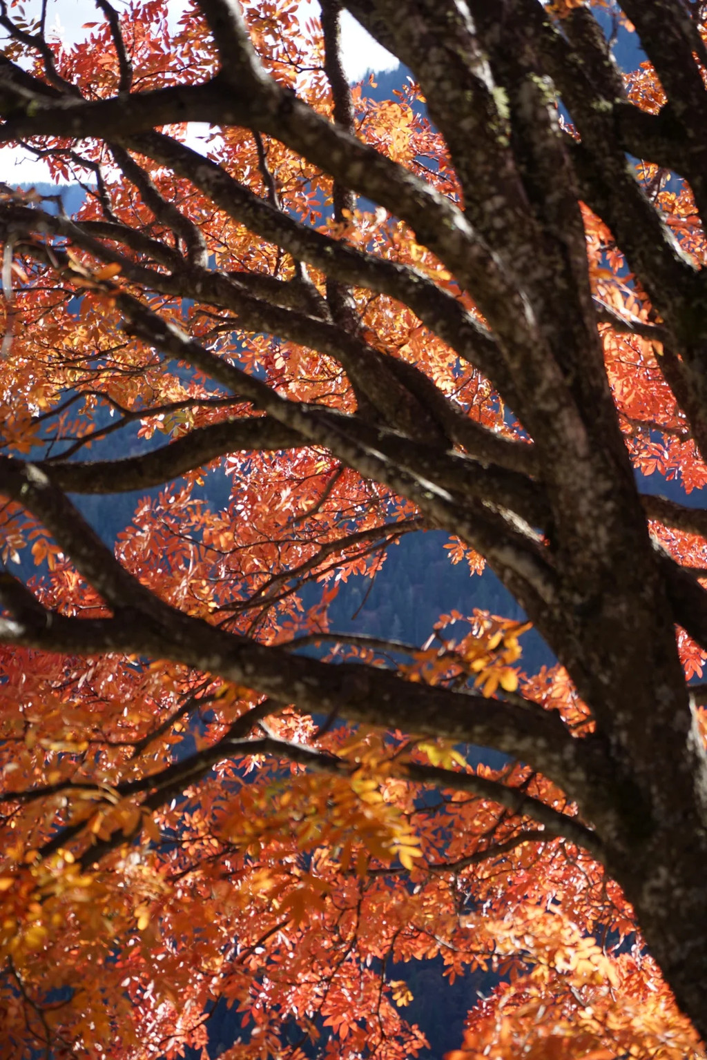 奶子沟彩林路边拐进去上山三四公里远,这棵树太出片了,绚丽的红色,单独拍和树的合影就很好看!可以开车但是路窄,人多的话建议步行30分左钟,一路风景也很不错!