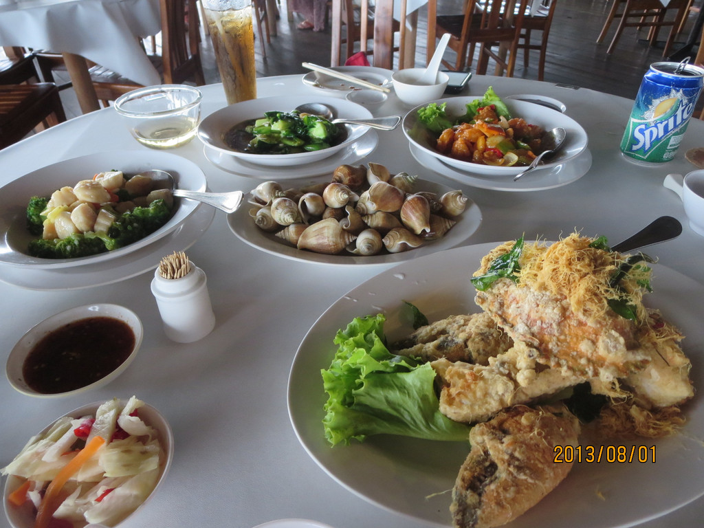 当天的晚餐是在当地颇有名气的水上餐厅——奎龙(Kelong)餐厅享用的,顾名思义,餐厅建在水上,全木制结构,四面透风,很适合欣赏海景。餐厅还连着一座长长的栈桥,直通向海面中心,很适合日落时分拍摄美景。
