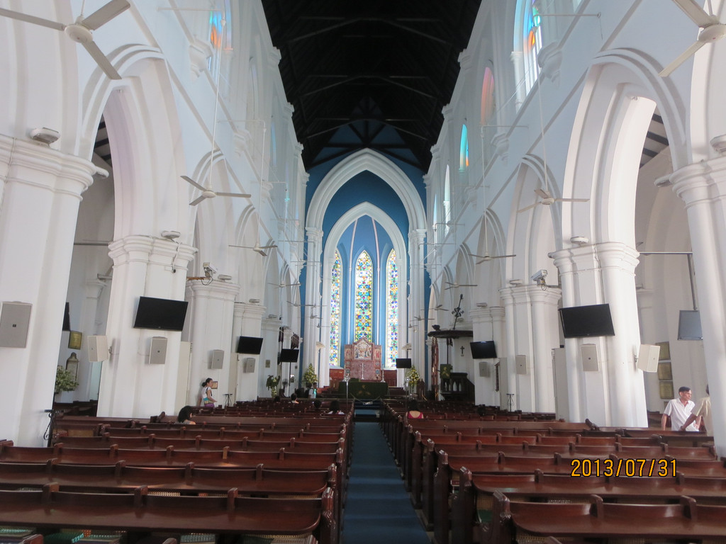 走进教堂的正门,只觉得眼前豁然一亮。大堂进伸55米,宽16米,挑高22米,给人以高大、肃穆的感觉,足以使得进入他怀抱的每一个人,都感到自己的渺小。